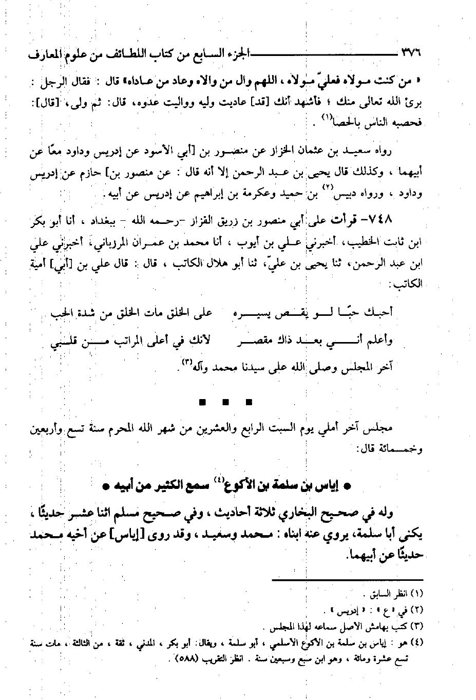 مجلس آخر أملي يوم السبت، العاشر من شهر الله المحرم سنة تسع وخمسمائة قال: