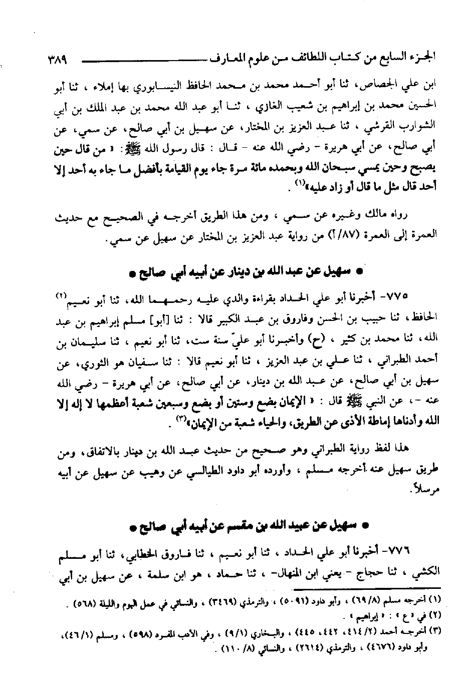 757- وقد أخبرنا ابن الحصين أيضاً بقراءتي عليه، أنا أبو طالب، أنا الشافعي، ثنا أبو إسماعيل الترمذي، ثنا أيوب بن سليمان، أخبرني سليمان -كذا في كتابي وأظنه سقط منه ابن أبي أويس-، عن شريك بن أبي نمر: أن كريباً مولى ابن عباس أخبره: أنه سمع الفضل بن عباس -رضي الله عنه- يقول: بت ليلة عند رسول الله صلى الله عليه وسلم، فلما انصرف من العشاء عشاء الآخرة انصرفت معه، فلما دخل البيت ركع ركعتين خفيفتين، ركوعهما مثل قعودهما وسجودهما مثل قيامهما، وذلك في الشتاء، ورسول الله صلى الله عليه وسلم في الحجرة وأنا في البيت فقلت: والله لأرمقن الليلة رسول الله صلى الله عليه وسلم ولأنظرن كيف صلاته؟ قال: فاضطجع في مصلاه حتى سمعت غطيطه، قال: ثم تعار فنظر في أفق السماء وكبر، ثم قرأ العشر الآيات من سورة آل عمران، ثم أخذ سواكاً فاستن، ثم خرج فقضى حاجته، ثم رجع إلى شن معلقة فصب على يده، ثم توضأ ولم يوقظ أحداً وصلى ركعتين ركوعهما مثل سجودهما، وسجودهما مثل قيامهما، قال: فأراه صلى مثل ما رقد، ثم اضطجع مكانه ورقد حتى سمعت غطيطه.