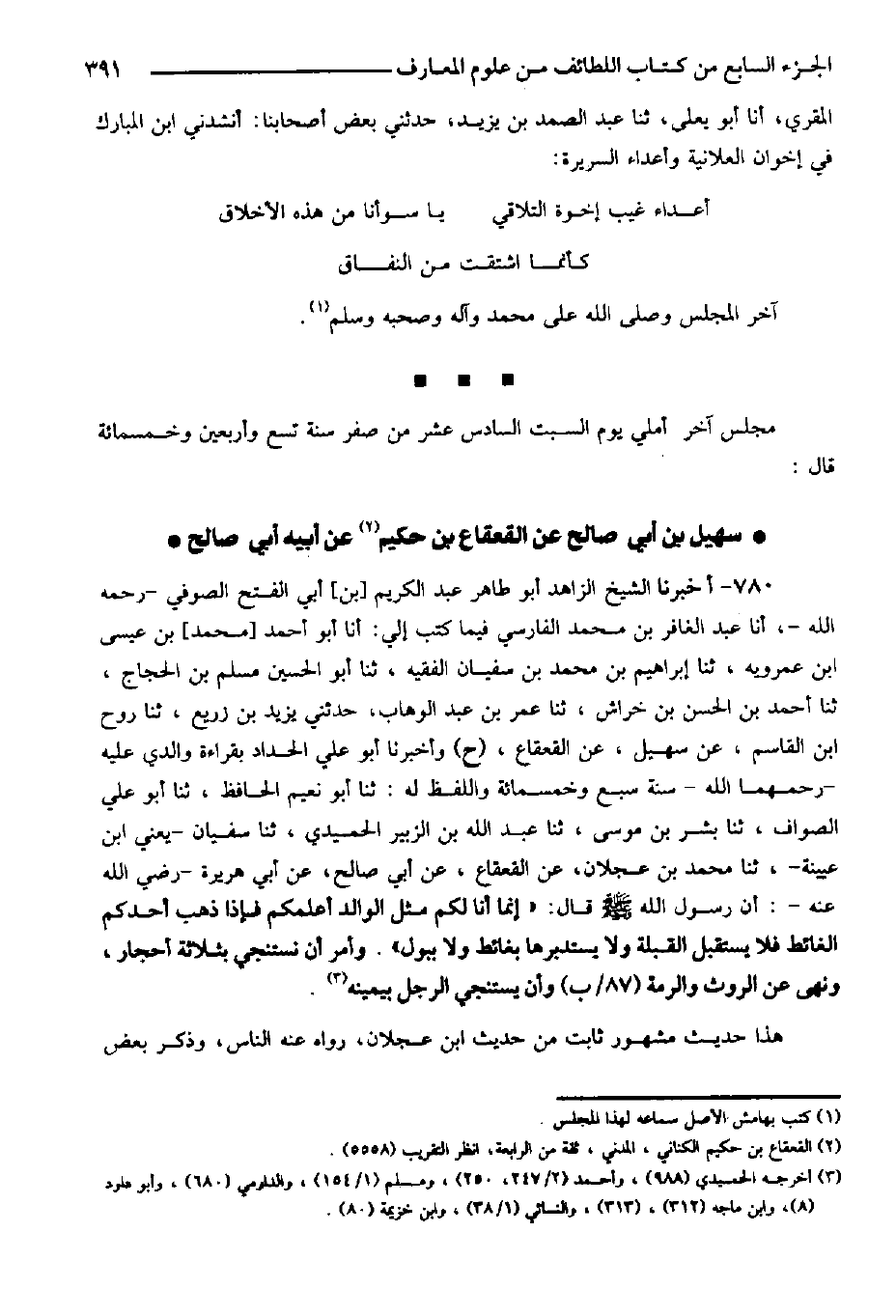 761- أخبرنا أبو علي الحسن بن أحمد الحداد -رحمه الله- إذناً أنا محمد بن عبد الله بن محمد بن صالح إجازة، أنا عبد الله بن محمد بن جعفر، ثنا عبد الرحمن بن الحسن، ثنا الحسن بن [أبي] الربيع، ثنا حسين الجعفي، عن أخيه الوليد بن علي، عن أبيه قال: كان سويد بن غفلة -رضي الله عنه- يقوم بنا في شهر رمضان وهو ابن عشرين ومائة سنة.