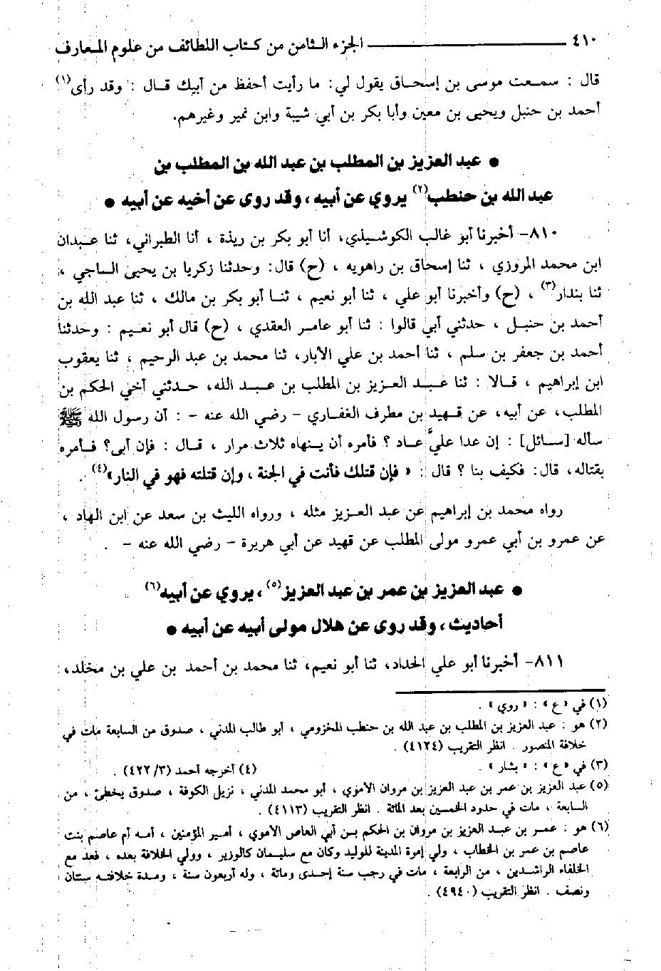 790- أخبرنا أبو غالب أحمد بن العباس التاني -رحمه الله-، أنا أبو بكر محمد بن عبد الله الضبي، (ح) وأخبرنا أبو علي الحداد -رحمه الله-، ثنا أبو نعيم الحافظ، قالا: ثنا أبو القاسم سليمان بن أحمد، ثنا علي بن عبد العزيز، ثنا أبو نعيم، ثنا سلمة بن نبيط، حدثني أبي أو نعيم بن أبي هند، عن أبي قال: حججت مع أبي وعمي -رضي الله عنهم- فقالا لي: أترى [ذاك] صاحب الجمل الأحمر الذي يخطب، ذاك رسول الله صلى الله عليه وسلم.