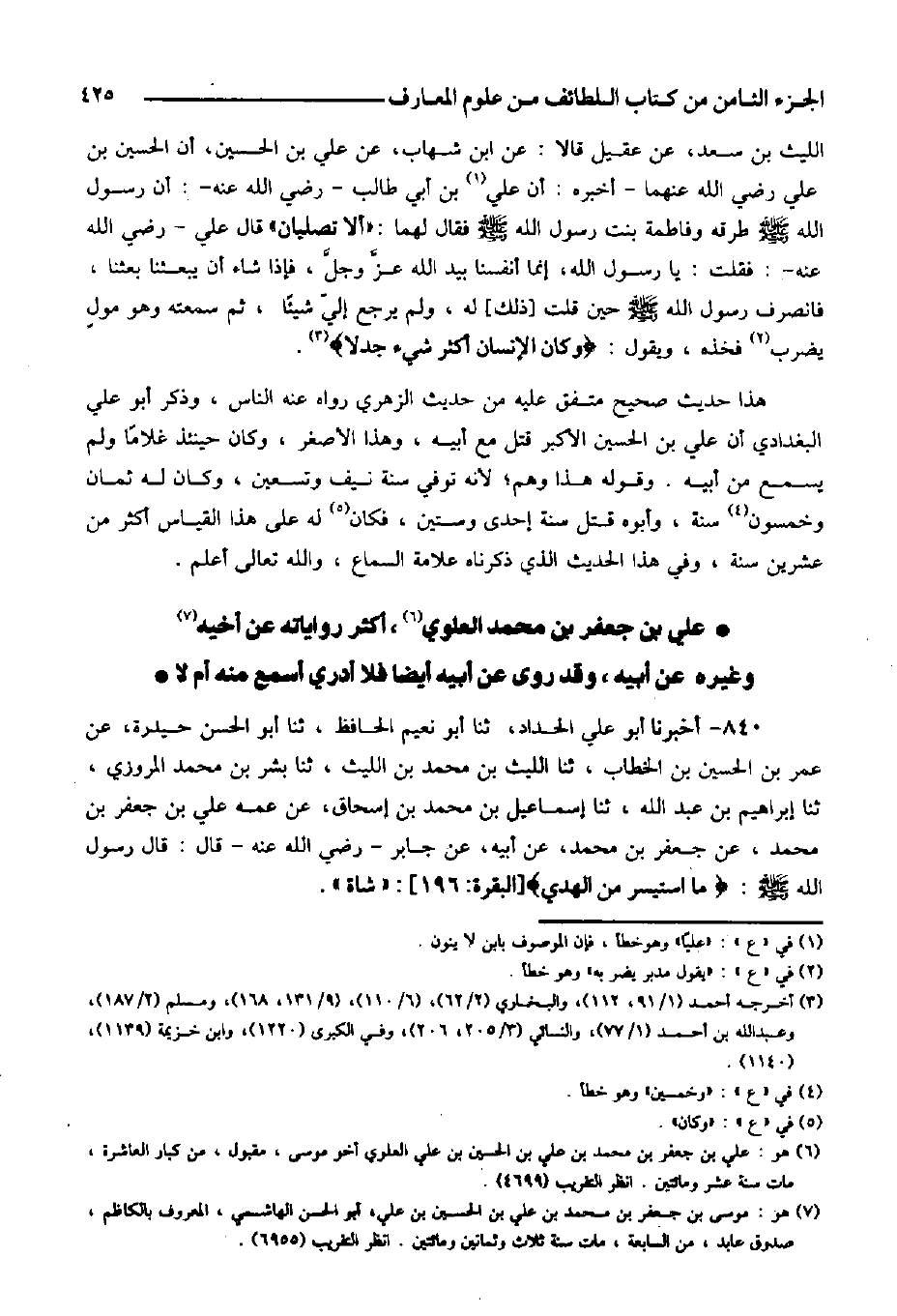 817- أخبرنا أبو القاسم هبة الله بن محمد بن عبد الواحد بن الحصين بقراءتي عليه -رحمه الله- ببغداد في شرقيها في جامع القصر يوم الجمعة في ربيع الأول سنة خمس وعشرين، أنا أبو طالب بن غيلان محمد بن محمد بن إبراهيم، أنا أبو إسحاق إبراهيم بن محمد بن يحيى المزكى النيسابوري، ثنا أبو بكر محمد بن إسحاق بن خزيمة، ثنا عمران بن موسى، (ح) وأخبرنا أبو غالب الكوشيذي والهيثم بن محمد بن الهيثم رحمهما الله قالا: أنا أبو بكر بن ريذة، [أنا] الطبراني، ثنا حفص بن عمر بن الصباح الزقي، ثنا أبو معمر المقعد، (ح) قال الطبراني: وحدثنا عبد الله بن أحمد بن حنبل، ثنا محمد بن عبيد بن حساب، قالوا: حدثنا عبد الوارث بن سعيد، ثنا محمد بن جحادة، [ثنا] عبد الجبار بن وائل قال: كنت غلاماً لا أعقل صلاة أبي، فحدثني وائل بن علقمة أو علقمة بن وائل، عن وائل بن حجر -رضي الله عنه- قال: كان رسول الله صلى الله عليه وسلم إذا دخل في الصلاة رفع يديه ثم كبر، ثم التحف يعني بثوبه، ثم أدخل يديه في ثوبه، ثم أخذ شماله بيمينه، وإذا أراد أن يركع أخرج يديه من ثوبه فرفعهما، فكبر فإذا رفع رأسه من الركوع رفع يديه، ثم كبر فسجد ووضع وجهه بين كفيه، فإذا رفع رأسه من السجود رفع يديه، لم يزل يفعل ذلك حتى فرغ من صلاته.