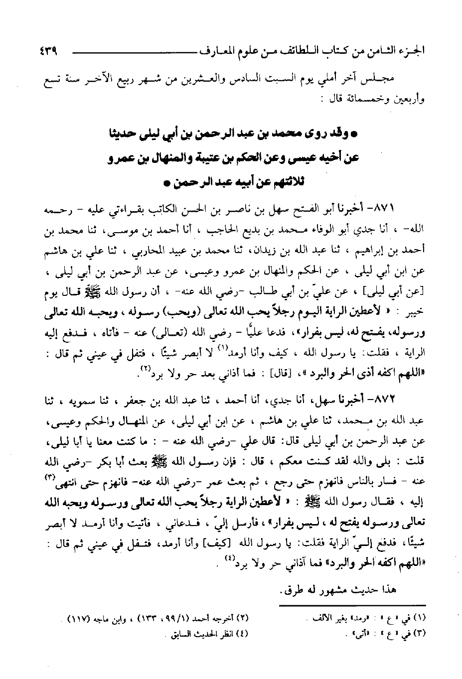 هذا لفظ الطبراني رواه جماعة عن جرير نحوه، ورواه جماعة عن يحيى بن سعيد عن أبي الزبير بن عدي (بن عدي) ، عن أبيه، ورواه محمد بن جعفر أخو إسماعيل عن يحيى بن أبي الزبير عن عدي، عن النبي صلى الله عليه وسلم مرسلاً من غير ذكر أبيه ولا عمه، فجعله الطبراني بذلك صحابياً.