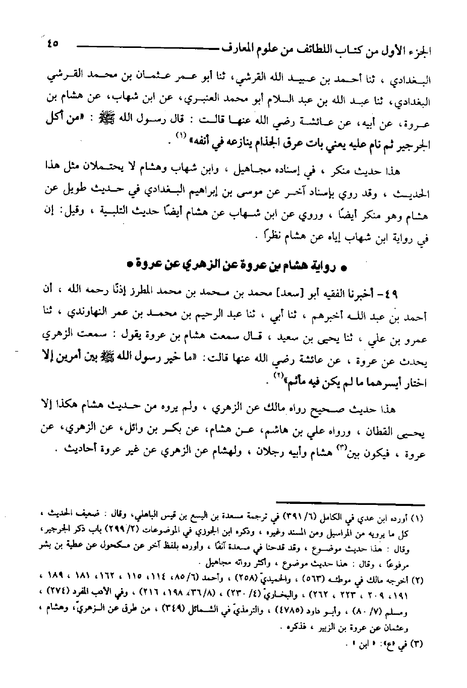 45- أخبرنا إسماعيل بن الفضل السراج، أنا أبو طاهر [بن] عبد الرحيم، أنا أبو الحسن علي بن عمر الحافظ، ثنا أبو محمد بن صاعد، ثنا محمد بن إسماعيل البخاري، وأبو عثمان أحمد بن أبي بكر المقدمي، قالا: ثنا إسماعيل بن أبي أويس، حدثني آخر، عن سليمان بن بلال، عن سهيل بن أبي صالح، عن الأعمش، عن أبي صالح، عن أبي هريرة رضي الله عنه أن رسول الله صلى الله عليه وسلم قال: ((لا تذهب حبيبتا عبد فيصبر ويحتسب إلا دخل الجنة)) .