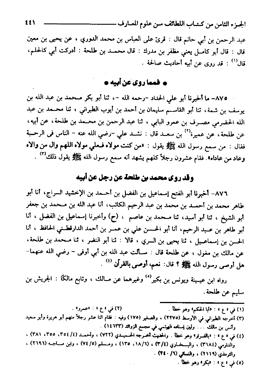 رواه محمد بن علي [بن] الجارود عن محمد بن عاصم مثله، ورواه محمد بن -[431]- سهيل وأبو مسعود الرازي عن حسين مثله. وقال أبو مسعود في روايته: عن السائب بن مالك أبو عطاء. وقد وهم الطبراني -رحمه الله- في هذا الحديث، فترجم للسائب بن يزيد عن عبد الله بن عمرو في جملة رواية الصحابة عنه؛ ظنه السائب بن يزيد الصحابي وأخرج له هذا الحديث.