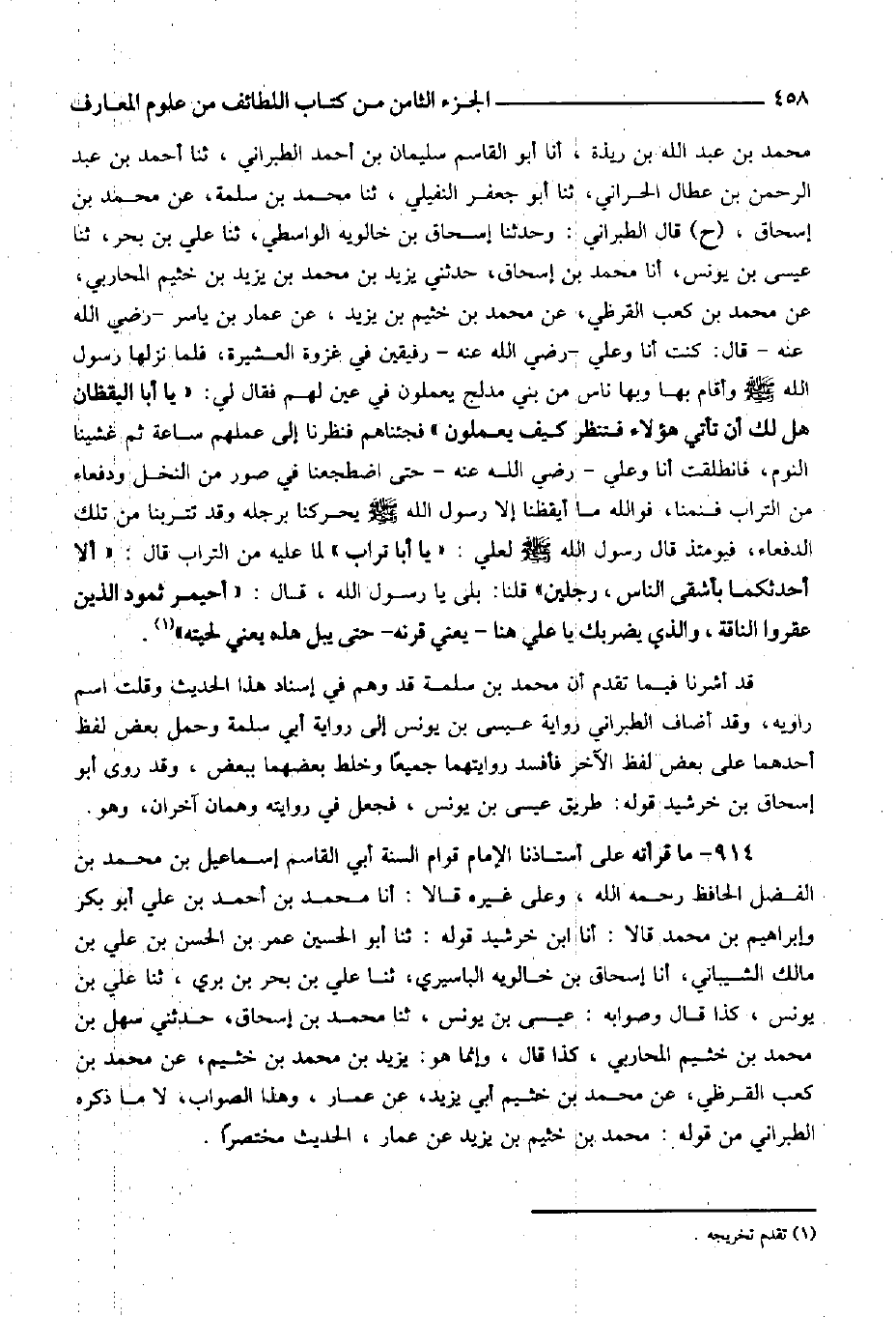 892- أخبرنا أبو الحسن العلوي، وأبو بكر القرآني، وأبو غالب الكوشيذي، قالوا: أنا ابن ريذة، أنا الطبراني، ثنا علي بن عبد العزيز، ثنا عارم أبو النعمان، ثنا حماد بن سلمة، عن عبد الرحمن بن أبي رافع، عن عمته سلمى، عن أبي رافع -رضي الله عنه- قال: دخل علينا رسول الله صلى الله عليه وسلم وعندنا شاة مطبوخة فقال: ((يا أبا رافع ناولني الذراع)) ، فناولته فأكلها ثم قال: ((ناولني الذراع)) ، فناولته فأكلها، ثم قال: ((ناولني الذراع)) ، فقلت: يا رسول الله وهل للشاة إلا ذراعين، فقال رسول الله صلى الله عليه وسلم: ((لو سكت لأعطيتني أذرعاً ما دعوتها)) .