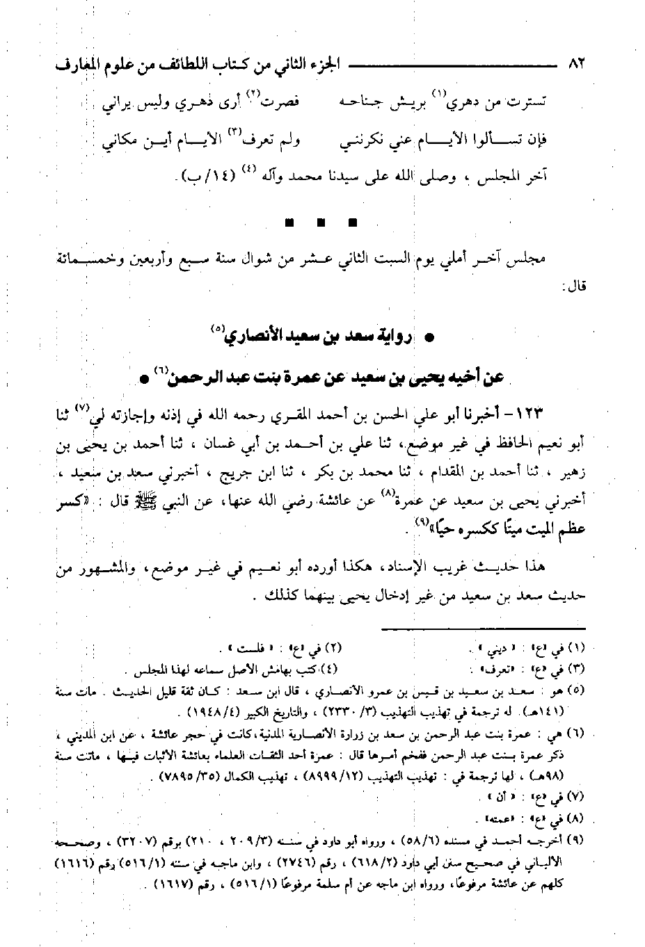 رواه عن هشيم غيره مثله، وكذلك رواه غير واحد عن شعبة مرفوعاً، ويروى عن سعيد وعدي من غير هذا الوجه مرفوعاً أيضاً، ورواه بعضهم عن شعبة عن حبيب بن أبي ثابت بدل عدي بن ثابت.