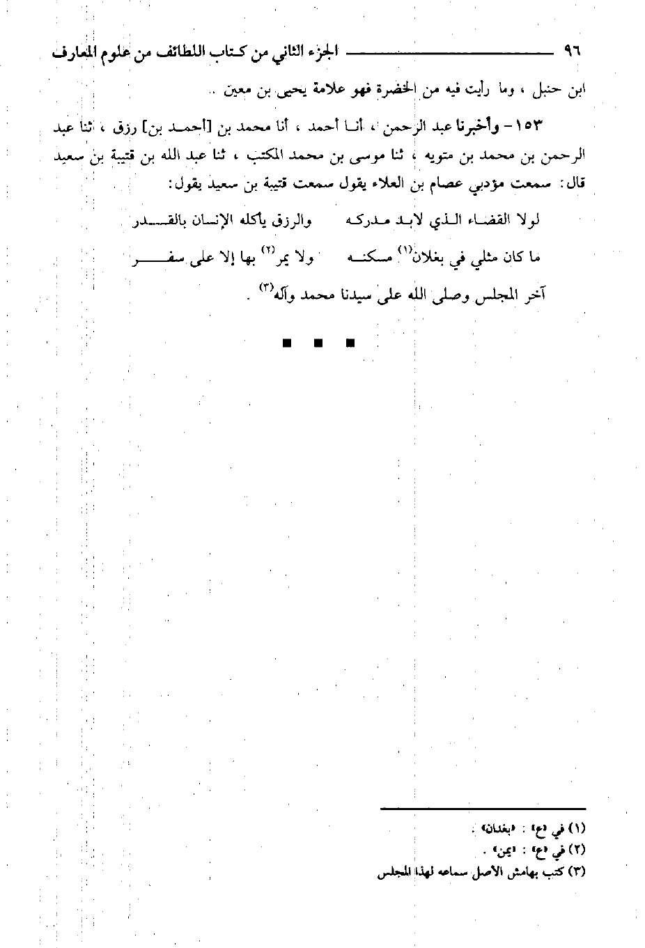 147- أخبرنا إسماعيل بن الفضل السراج، أنا أبو طاهر بن عبد الرحيم، أنا أبو الحسن الدارقطني، ثنا عبد الباقي بن قانع، ثنا عبد الله بن محمد بن علي البلخي، ثنا أبو بكر الأعين، ثنا علي بن المديني، ثنا أحمد بن حنبل، ثنا قتيبة بن سعيد، ثنا الليث، عن يزيد بن أبي حبيب، عن أبي الطفيل، عن معاذ رضي الله عنهما قال: ((كان رسول الله صلى الله عليه وسلم في غزوة تبوك إذا ارتحل قبل زيغ الشمس أخر الظهر إلى العصر ويصليهما جميعاً، وإذا ارتحل بعد زيغ الشمس صلى الظهر والعصر جميعاً ثم سار، وكان إذا ارتحل قبل المغرب أخر المغرب وصلاها مع العشاء، وإذا ارتحل بعد المغرب عجل العشاء فصلاها مع المغرب)) .