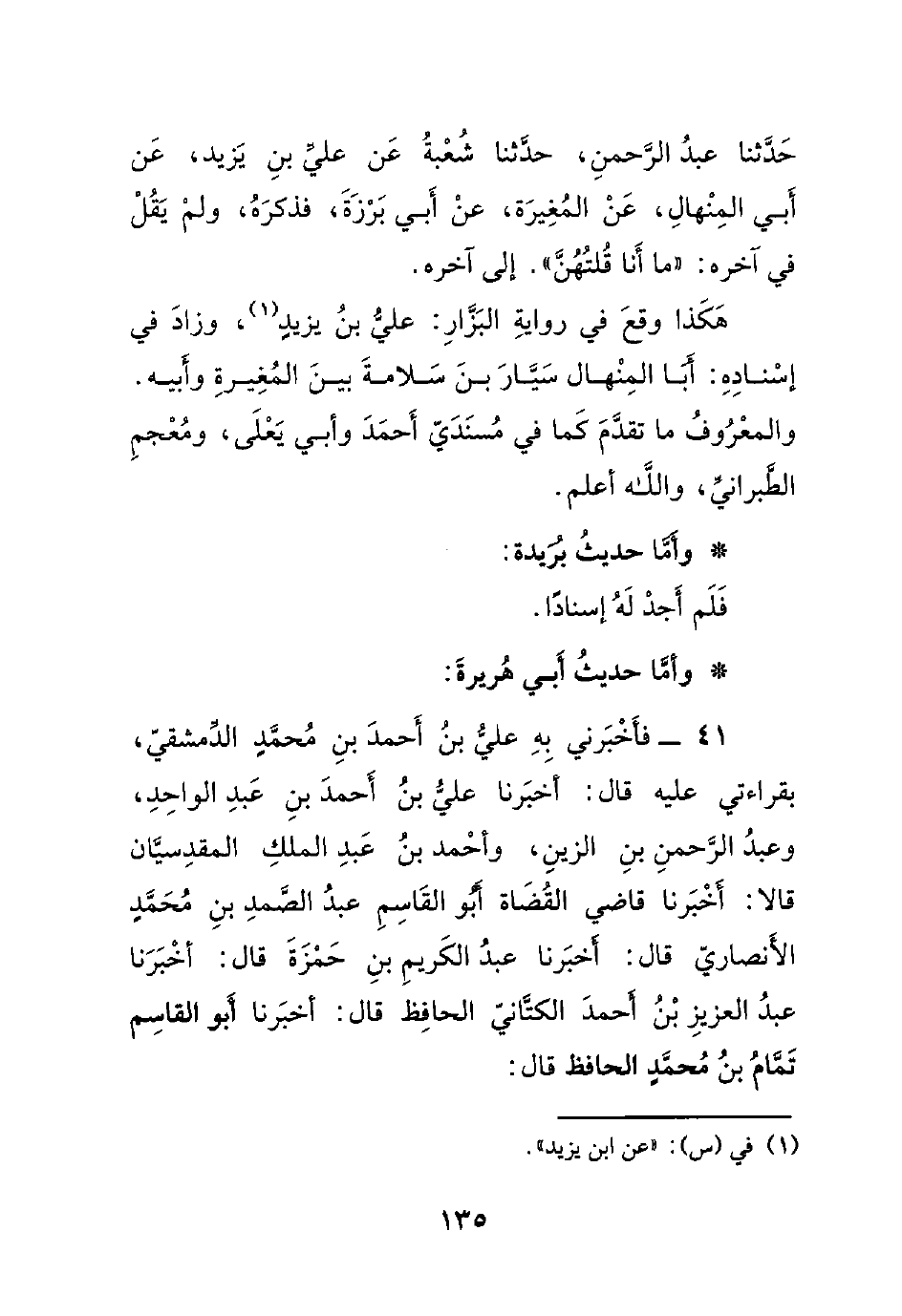 حدثنا عبد الرحمن، حدثنا شعبة عن علي بن يزيد، عن أبي المنهال، عن المغيرة، عن أبي برزة، فذكره، ولم يقل في آخره: ((ما أنا قلتهن)). إلى آخره.