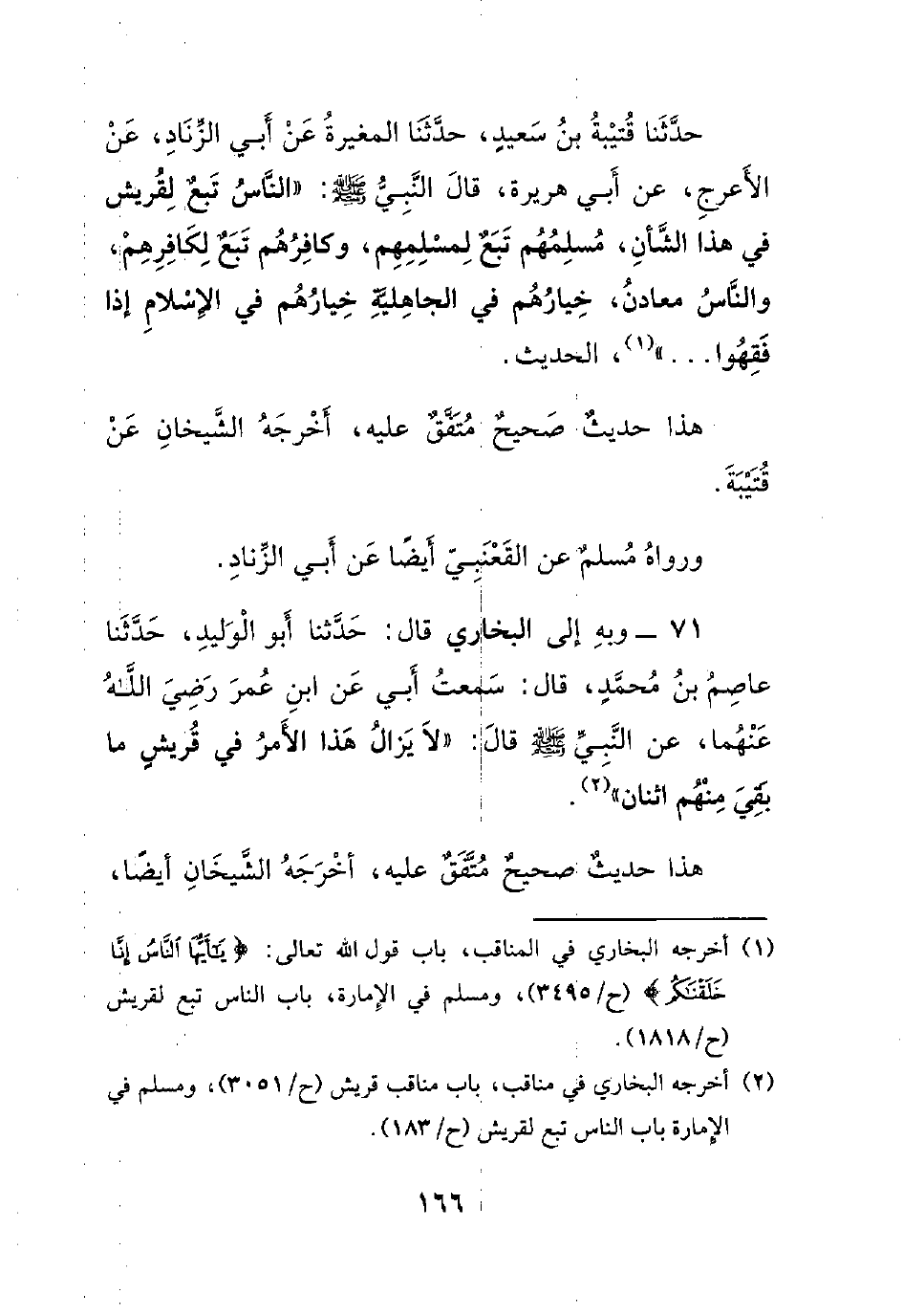 71- وبه إلى البخاري قال: حدثنا أبو الوليد، حدثنا عاصم بن محمدٍ، قال: سمعت أبي عن ابن عمر رضي الله عنهما، عن النبي صلى الله عليه وسلم قال: ((لا يزال هذا الأمر في قريشٍ ما بقي منهم اثنان)).