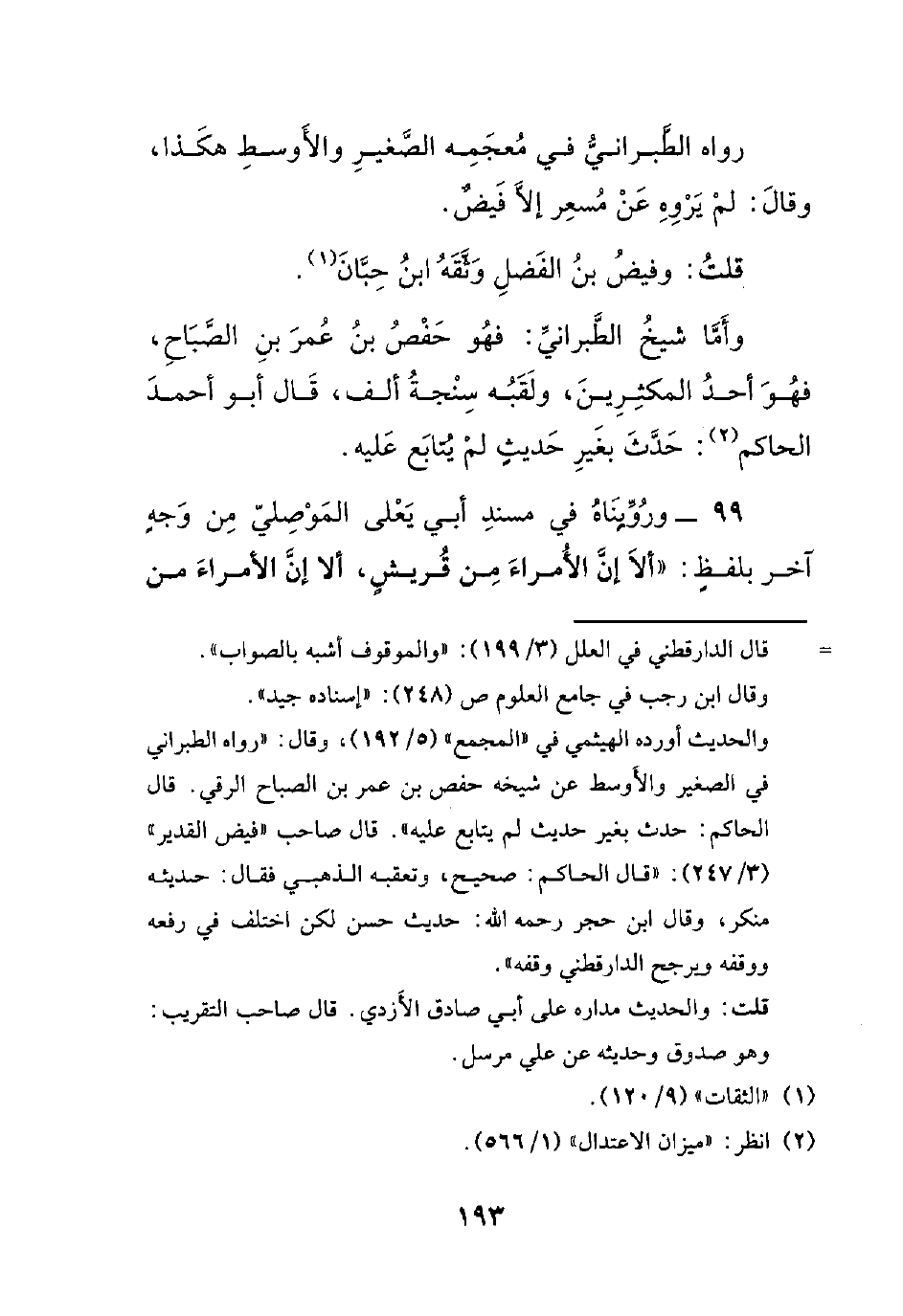 99- ورويناه في مسند أبي يعلى الموصلي من وجهٍ آخر بلفظٍ: ((ألا إن الأمراء من قريشٍ، ألا إن الأمراء من