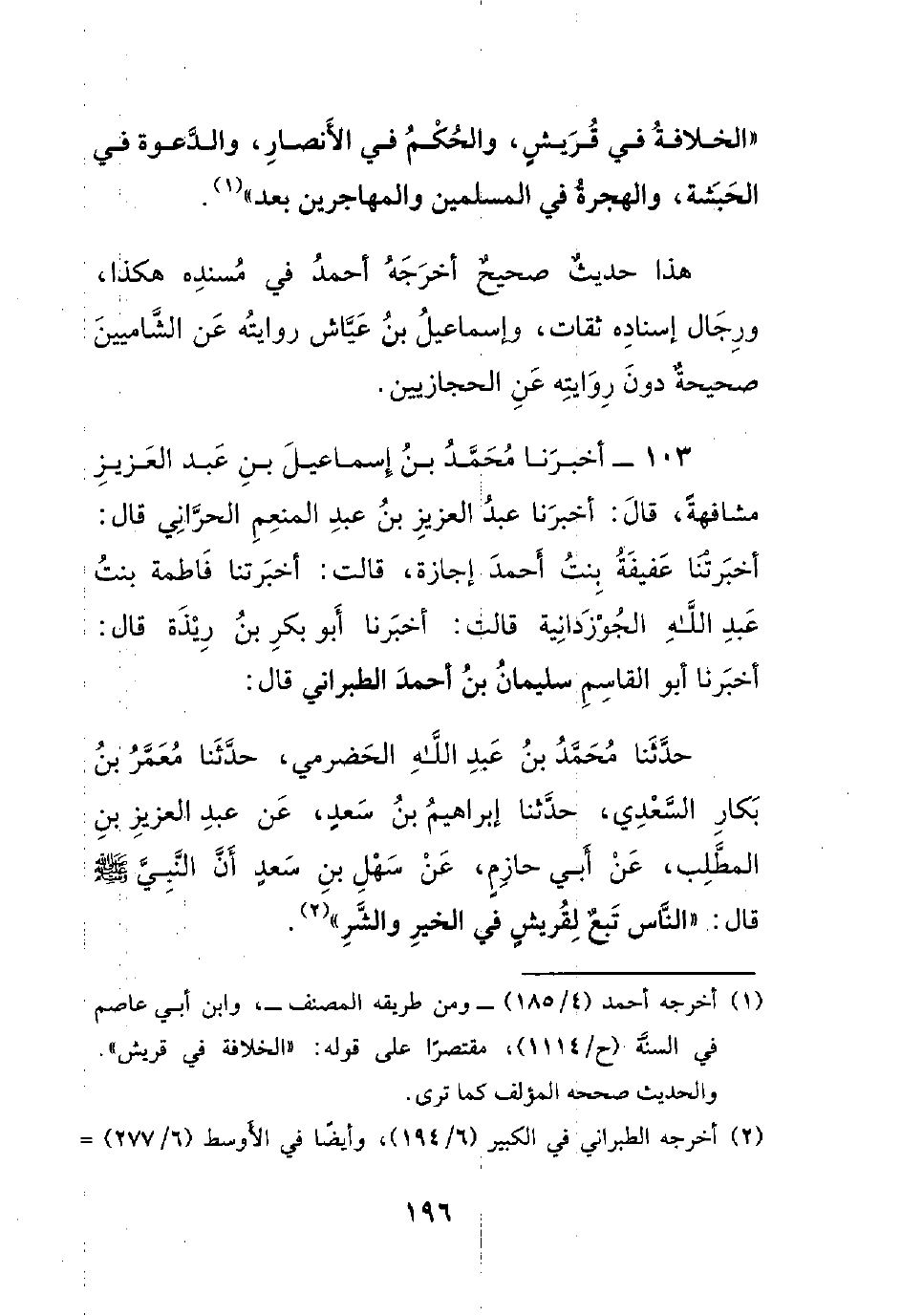 حدثنا محمد بن عبد الله الحضرمي، حدثنا معمر بن بكار السعدي، حدثنا إبراهيم بن سعدٍ، عن عبد العزيز بن المطلب، عن أبي حازمٍ، عن سهل بن سعدٍ أن النبي صلى الله عليه وسلم قال: ((الناس تبعٌ لقريشٍ في الخير والشر)).