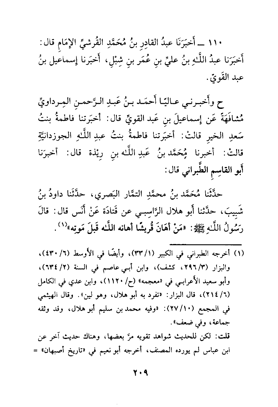 110- أخبرنا عبد القادر بن محمد القرشي الإمام قال: أخبرنا عبد الله بن علي بن عمر بن شبل، أخبرنا إسماعيل بن عبد القوي.
