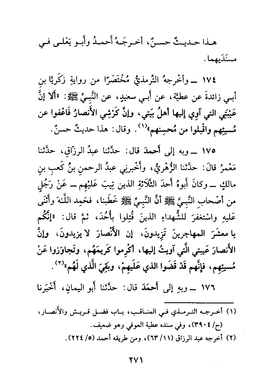 174- وأخرجه الترمذي مختصراً من رواية زكريا بن أبي زائدة عن عطية، عن أبي سعيدٍ، عن النبي صلى الله عليه وسلم : ((ألا إن عيبتي التي آوي إليها أهل بيتي، وإن كرشي الأنصار فاعفوا عن مسيئهم واقبلوا من محسنهم)). وقال: هذا حديثٌ حسنٌ.