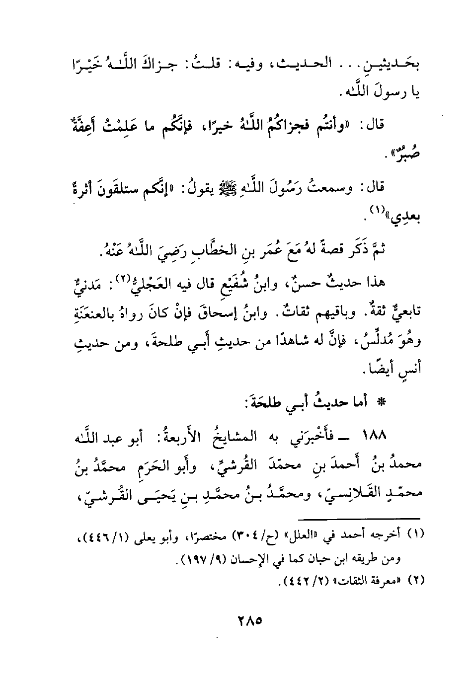 188- فأخبرني به المشايخ الأربعة: أبو عبد الله محمد بن أحمد بن محمد القرشي، وأبو الحرم محمد بن محمد القلانسي، ومحمد بن محمد بن يحيى القرشي،