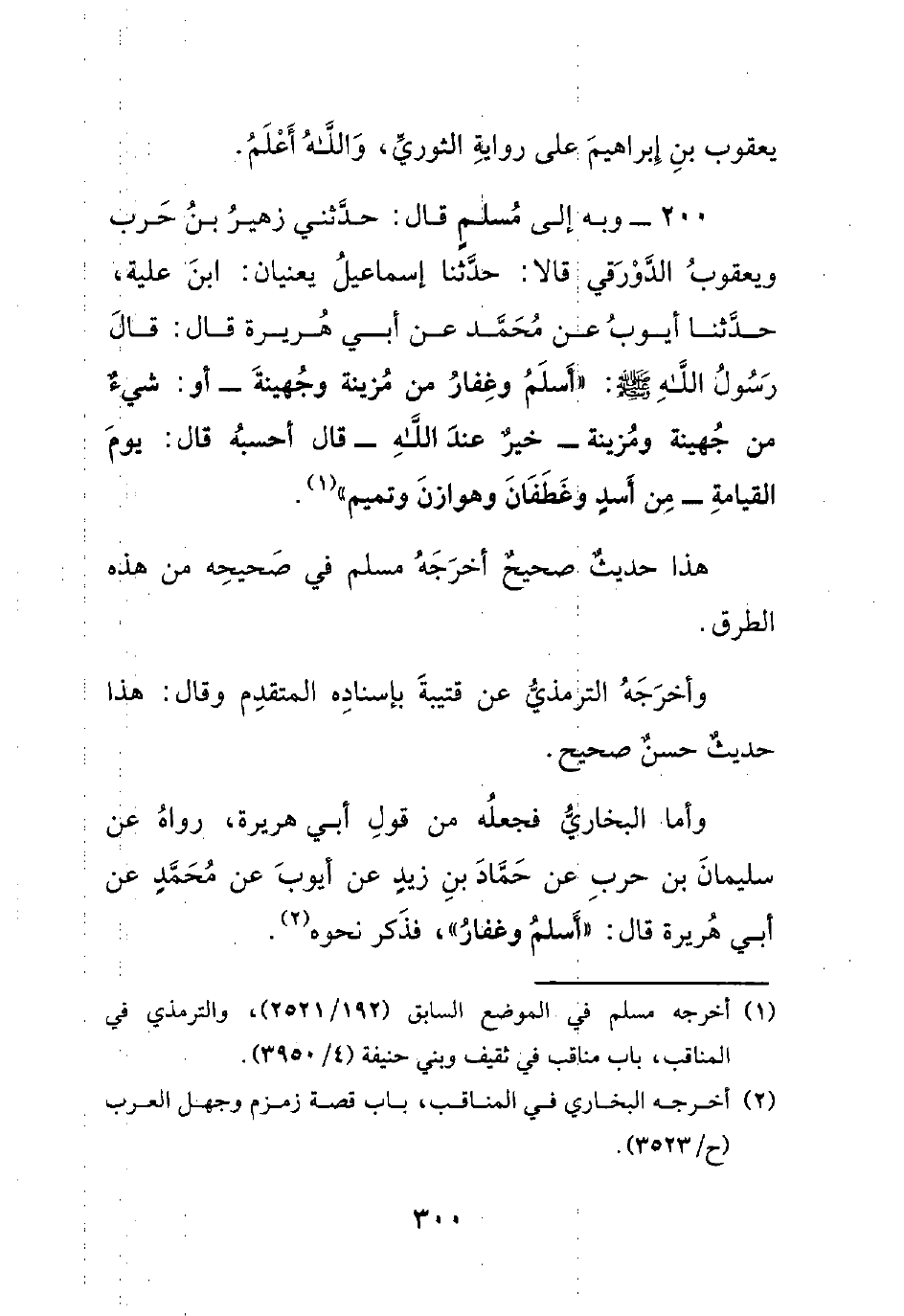 200- وبه إلى مسلم قال: حدثني زهير بن حرب ويعقوب الدورقي قالا: حدثنا إسماعيل يعنيان: ابن علية، حدثنا أيوب عن محمد عن أبي هريرة قال: قال رسول الله صلى الله عليه وسلم : ((أسلم وغفار من مزينة وجهينة -أو: شيءٌ من جهينة ومزينة- خيرٌ عند الله -قال أحسبه قال: يوم القيامة- من أسدٍ وغطفان وهوازن وتميم)).