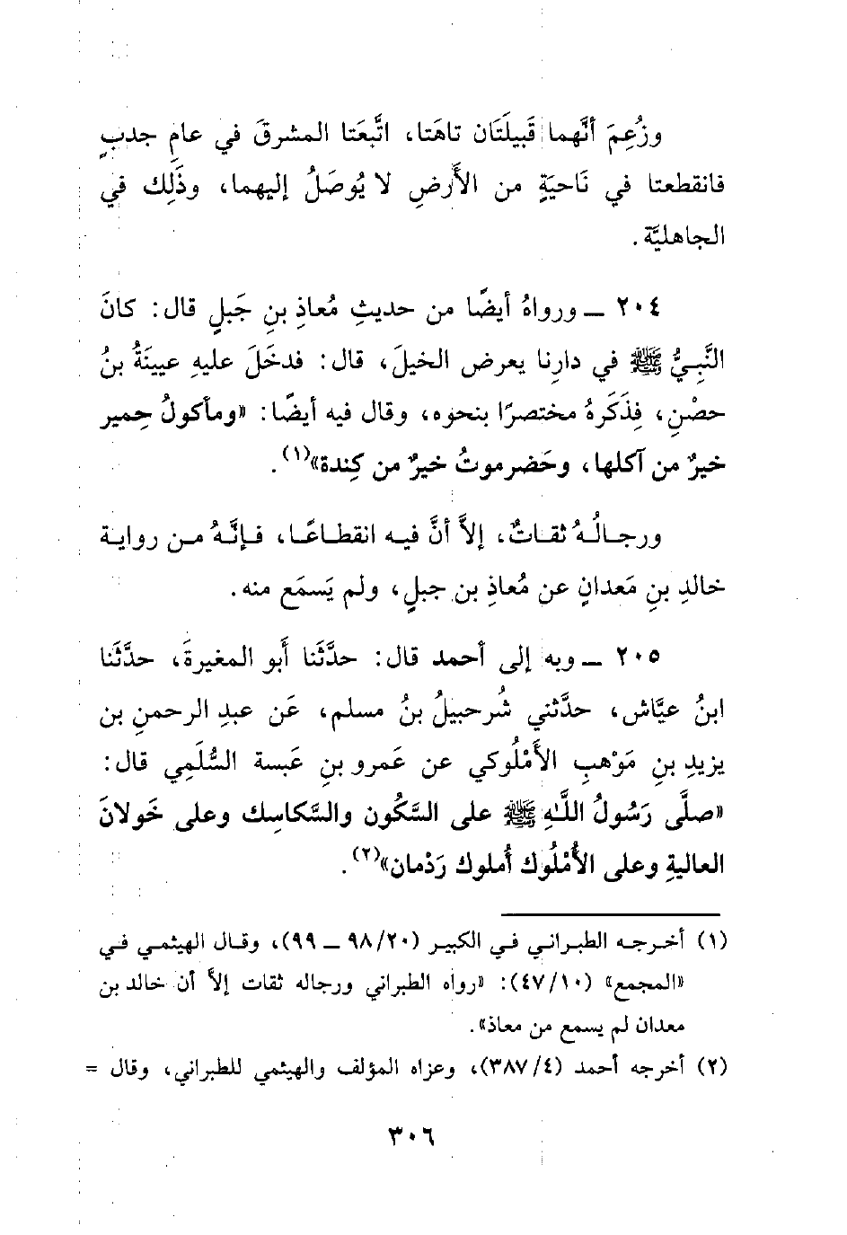 205- وبه إلى أحمد قال: حدثنا أبو المغيرة، حدثنا ابن عياش، حدثني شرحبيل بن مسلم، عن عبد الرحمن بن يزيد بن موهب الأملوكي عن عمرو بن عبسة السلمي قال: ((صلى رسول الله صلى الله عليه وسلم على السكون والسكاسك وعلى خولان العالية وعلى الأملوك أملوك ردمان)).
