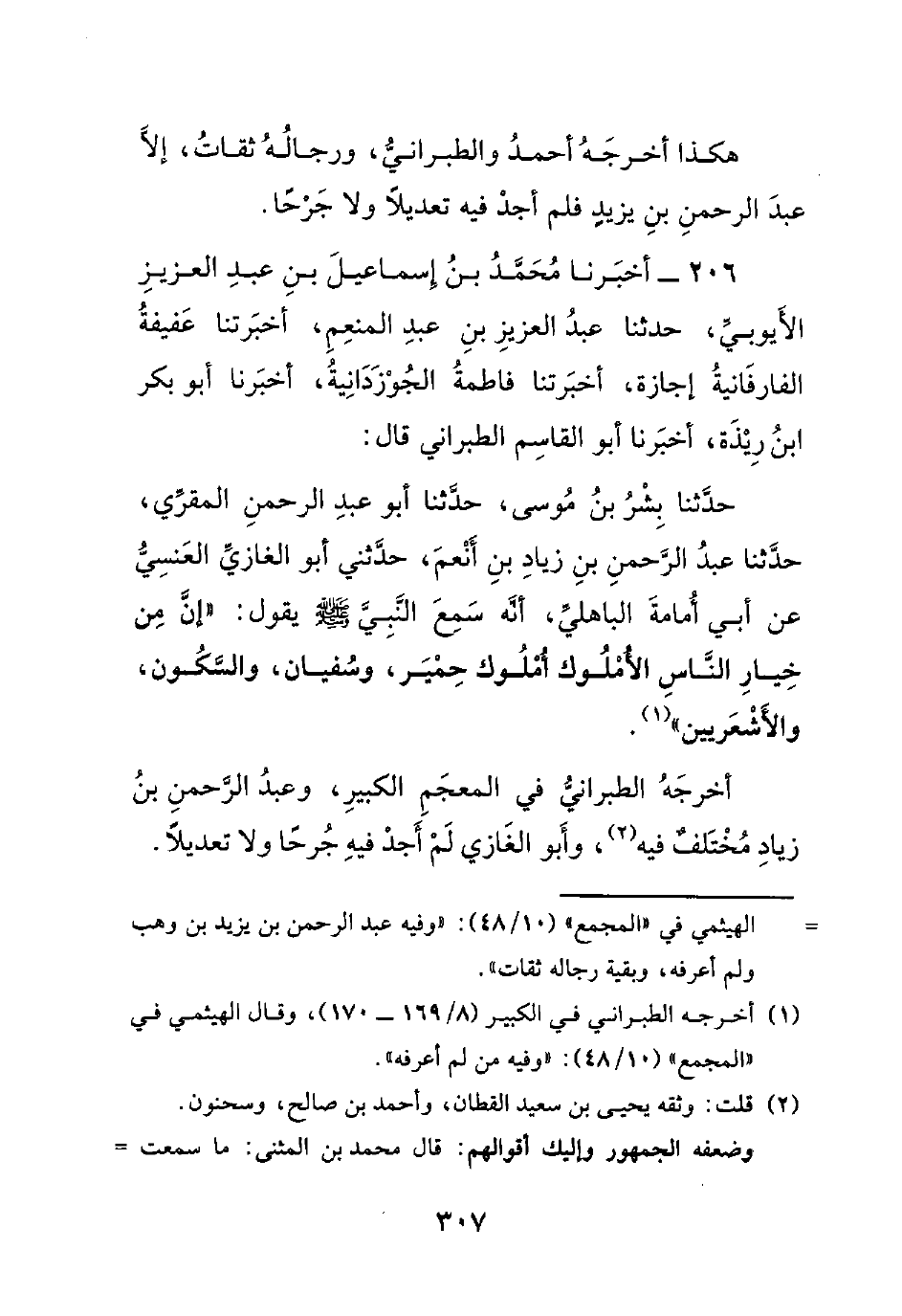 هكذا أخرجه أحمد والطبراني، ورجاله ثقات، إلا عبد الرحمن بن يزيد فلم أجد فيه تعديلاً ولا جرحاً.