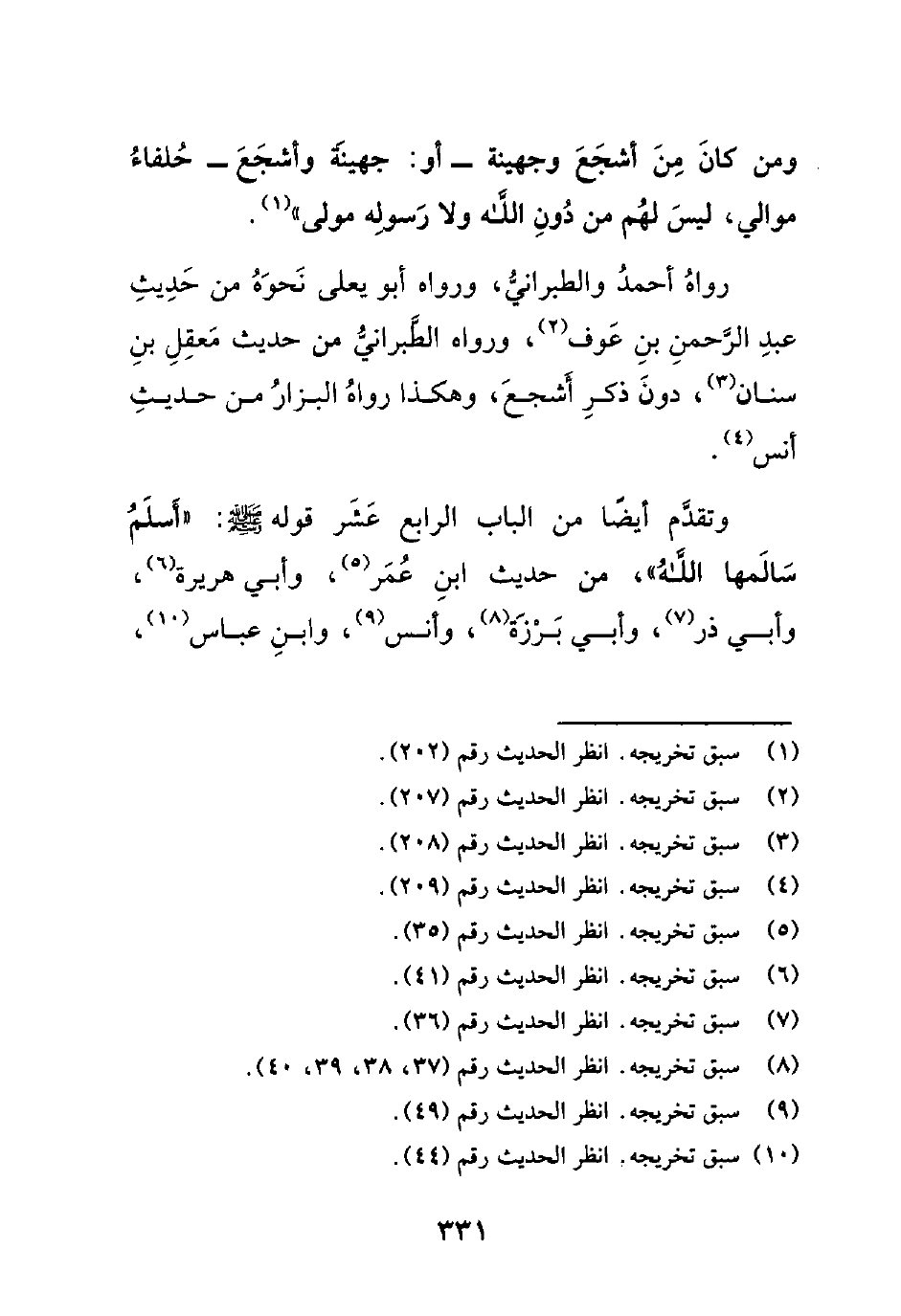 وتقدم أيضاً من الباب الرابع عشر قوله صلى الله عليه وسلم : ((أسلم سالمها الله))، من حديث ابن عمر، وأبي هريرة، وأبي ذر، وأبي برزة، وأنس، وابن عباس،