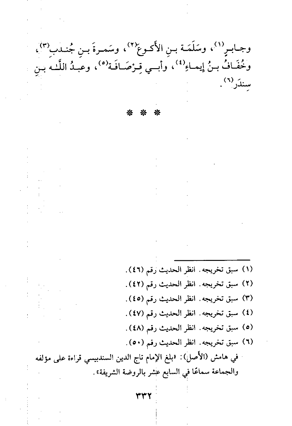وجابرٍ، وسلمة بن الأكوع، وسمرة بن جندب، وخفاف بن إيماء، وأبي قرصافة، وعبد الله بن سندر.