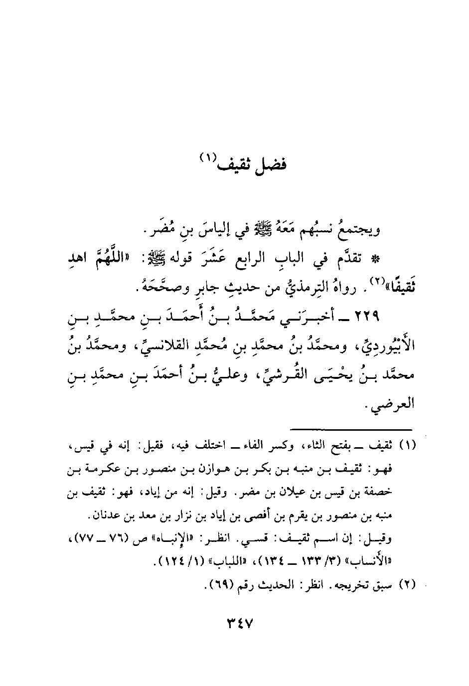 تقدم في الباب الرابع عشر قوله صلى الله عليه وسلم : ((اللهم اهد ثقيفاً)). رواه الترمذي من حديث جابر وصححه.