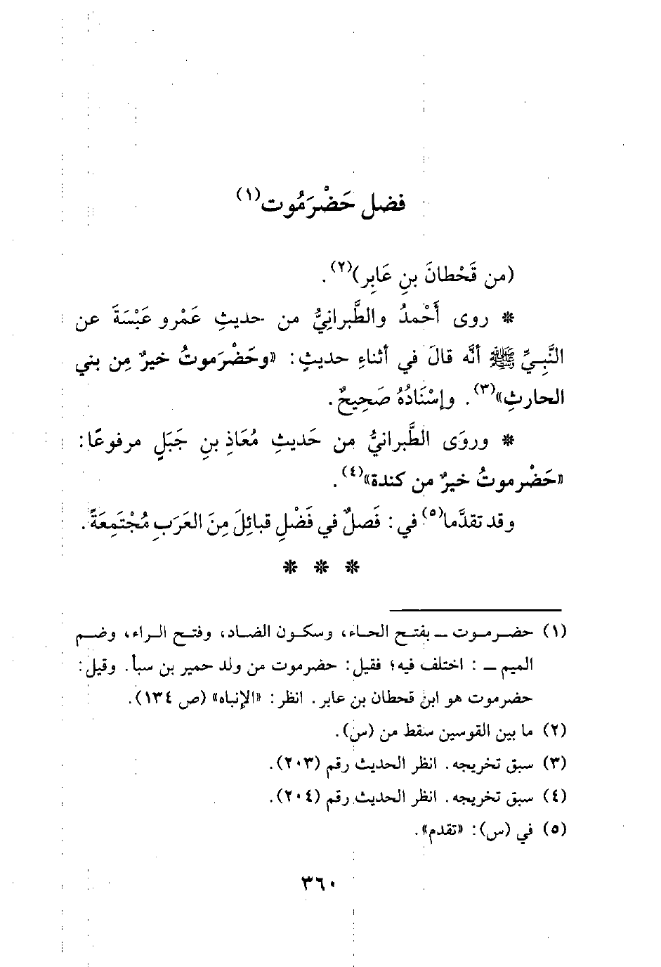 روى أحمد والطبراني من حديث عمرو عبسة عن النبي صلى الله عليه وسلم أنه قال في أثناء حديثٍ: ((وحضرموت خيرٌ من بني الحارث)). وإسناده صحيحٌ.