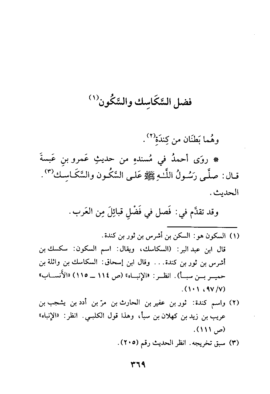 روى أحمد في مسنده من حديث عمرو بن عبسة قال: صلى رسول الله صلى الله عليه وسلم على السكون والسكاسك. الحديث.