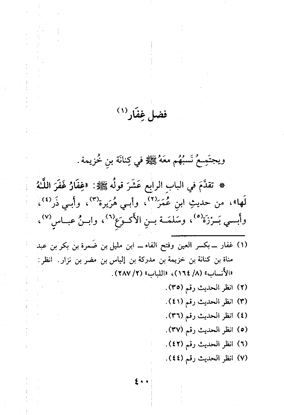 تقدم في الباب الرابع عشر قوله صلى الله عليه وسلم : ((غفار غفر الله لها))، من حديث ابن عمر، وأبي هريرة، وأبي ذر، وأبي برزة، وسلمة بن الأكوع، وابن عباسٍ،