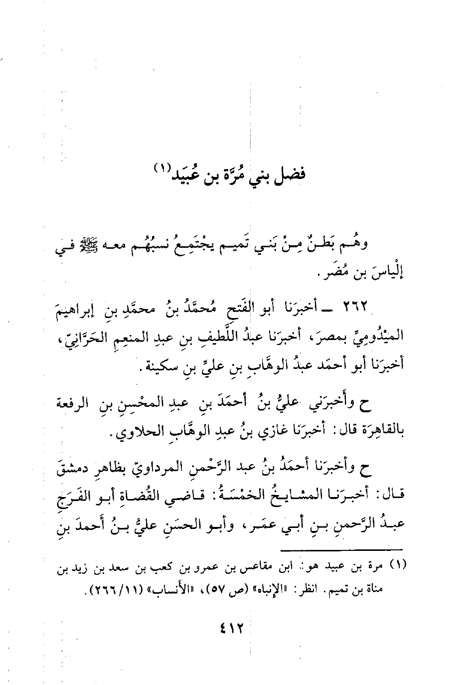 262- أخبرنا أبو الفتح محمد بن محمد بن إبراهيم الميدومي بمصر، أخبرنا عبد اللطيف بن عبد المنعم الحراني، أخبرنا أبو أحمد عبد الوهاب بن علي بن سكينة.