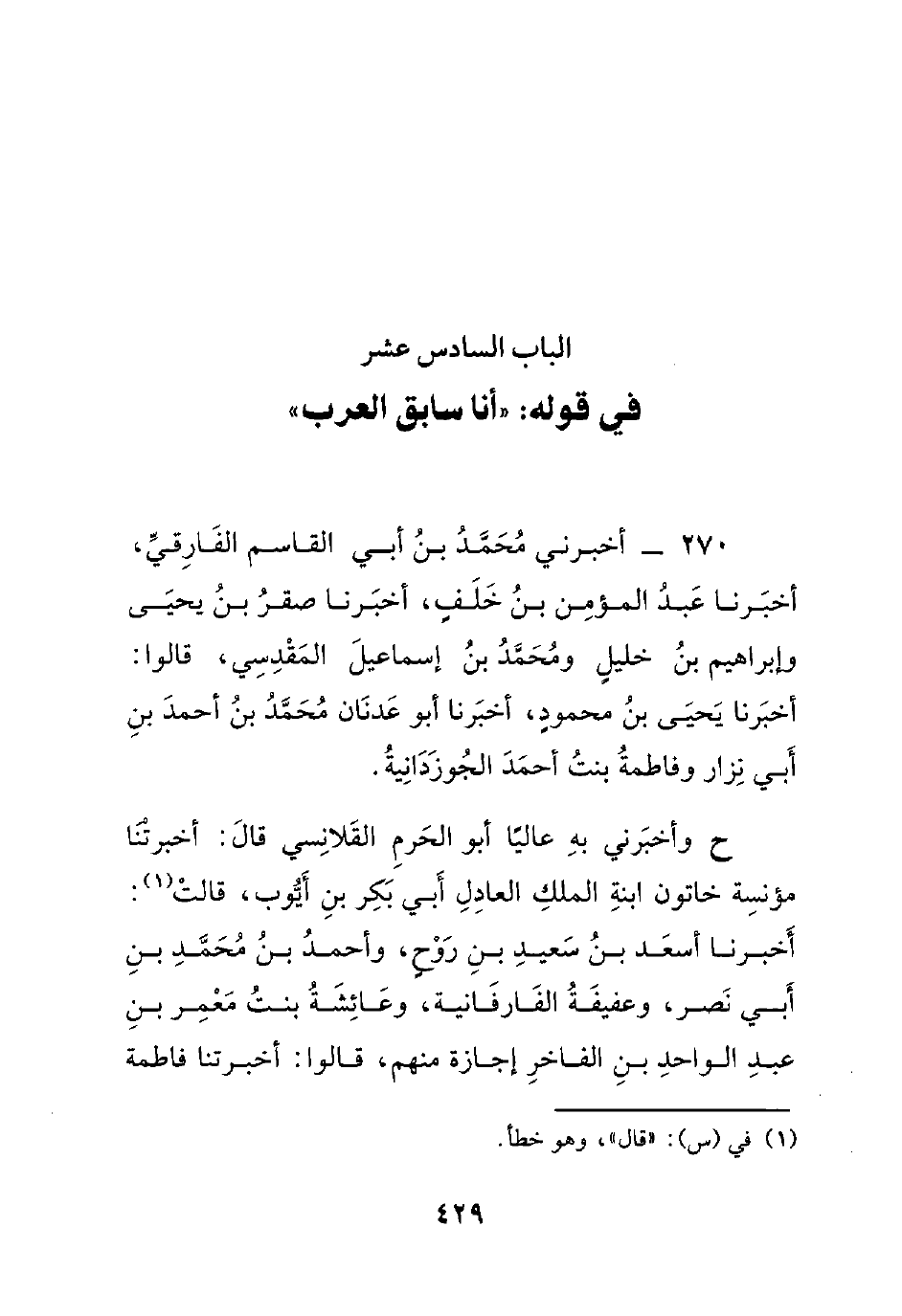 الباب السادس عشر في قوله: ((أنا سابق العرب))