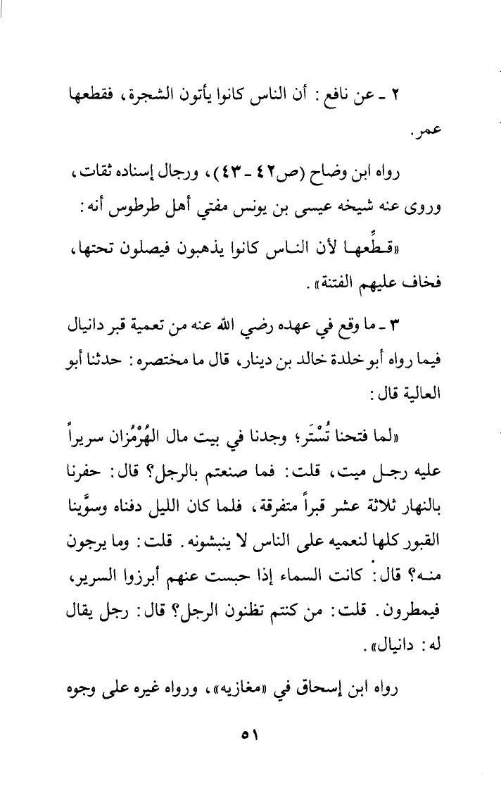 3- ما وقع في عهده -رضي الله عنه- من تعمية قبر دانيال, فيما رواه أبو خلدة خالد بن دينار، قال ما مختصره: حدثنا أبو العالية قال: