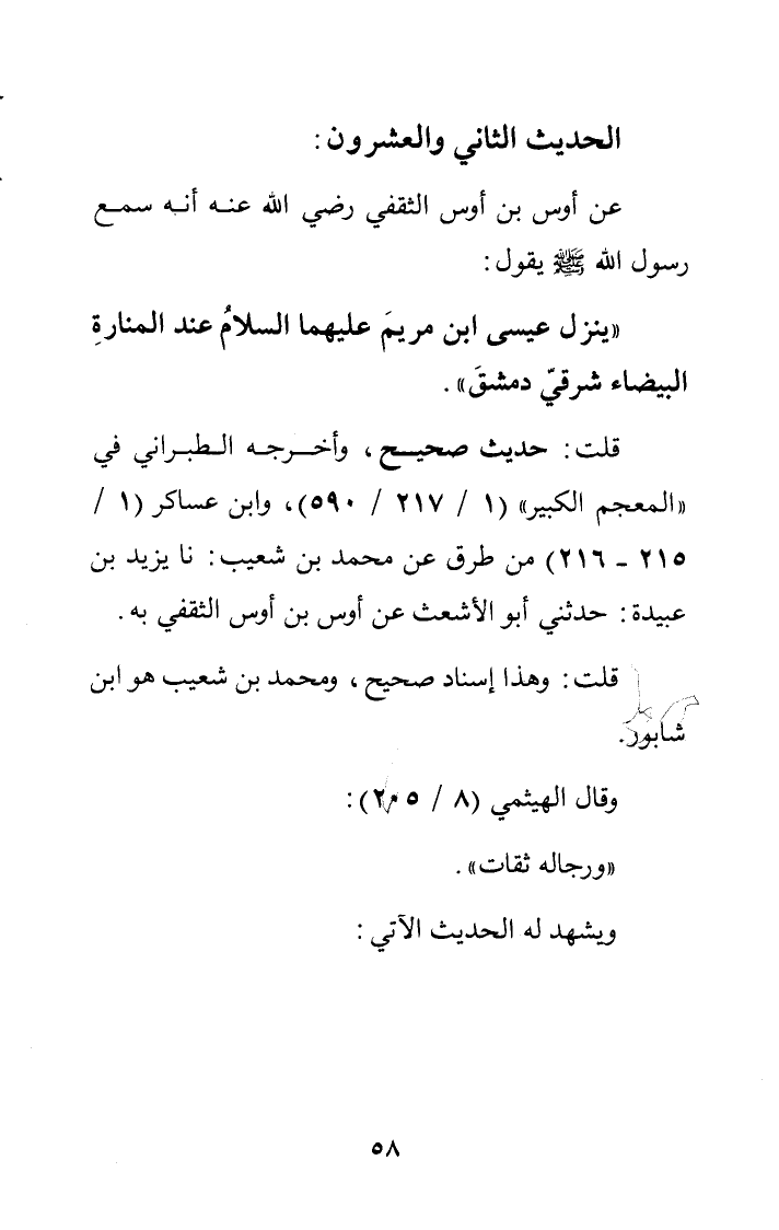 "ينزل عيسى ابن مريم -عليهما السلامُ- عند المنارةِ البيضاء شرقي دمشق".