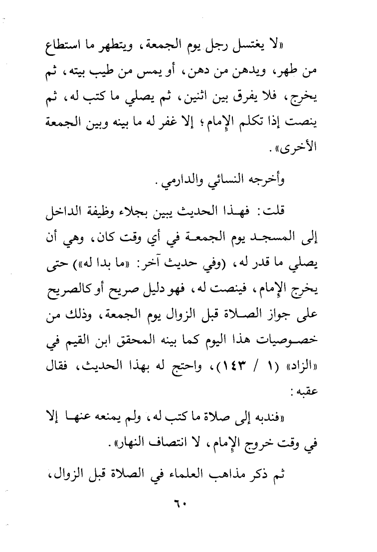 "لا يغتسل رجل يوم الجمعة ويتطهر ما استطاع من طهر ويدهن من دهن أو يمس من طيب بيته ثم يخرج فلا يفرق بين اثنين ثم يصلي ما كتب له ثم ينصت إذا تكلم الإمام إلا غفر له ما بينه وبين الجمعة الأخرى".