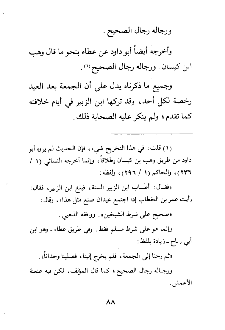 وجميع ما ذكرناه يدل على أن الجمعة بعد العيد رخصة لكل أحد وقد تركها ابن الزبير في أيام خلافته كما تقدم ولم ينكر عليه الصحابة ذلك.
