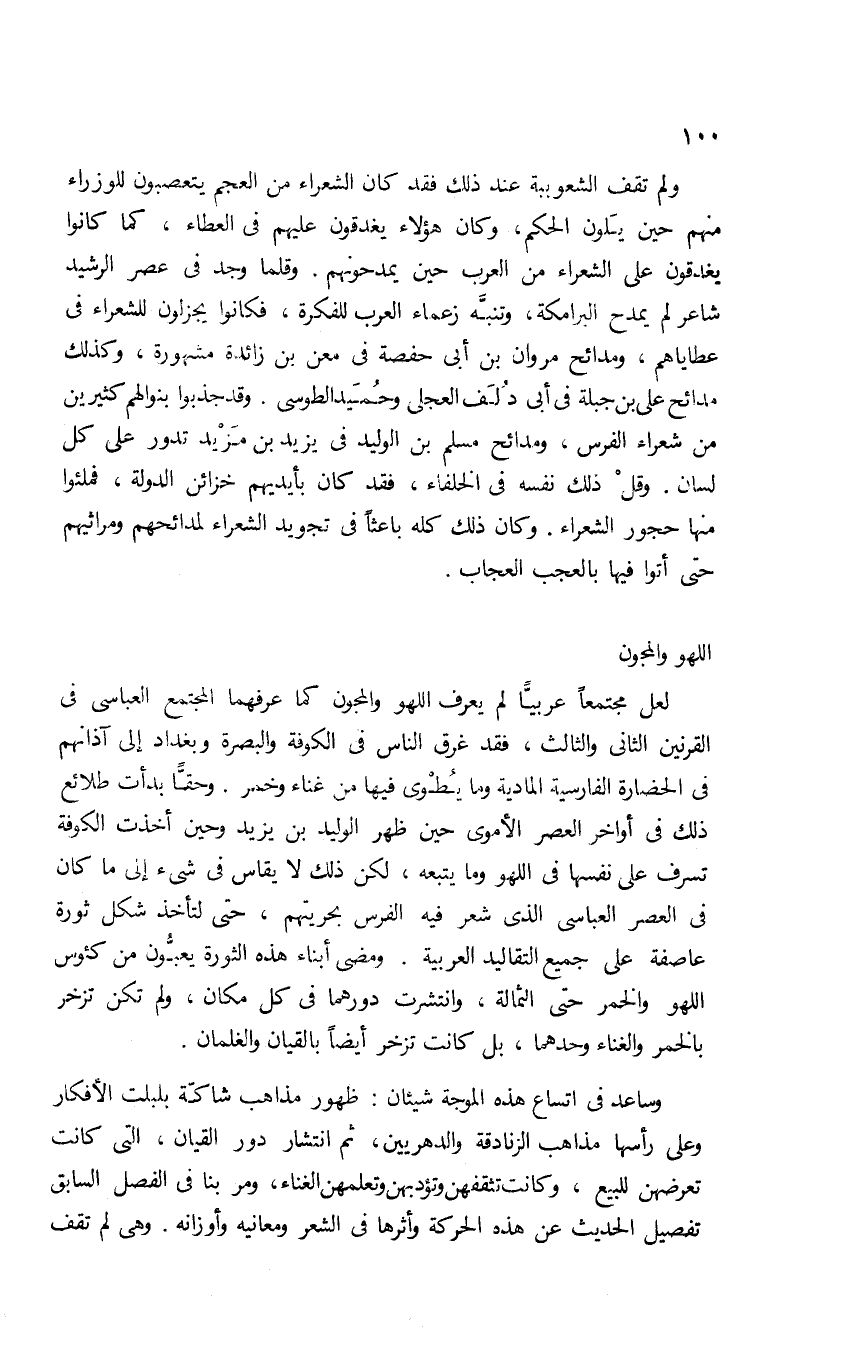 لعل مجتمعًا عربيًّا لم يعرف اللهو والمجون كما عرفها المجتمع العباسي في القرنين الثاني والثالث، فقد غرق الناس في الكوفة والبصرة وبغداد إلى آذانهم في الحضارة الفارسية المادية وما يُطْوَى فيها من غناء وخمر. وحقًّا بدأت طلائع ذلك في أواخر العصر الأموي حين ظهر الوليد بن يزيد وحين أخذت الكوفة تسرف على نفسها في اللهو وما يتبعه؛ لكن ذلك لا يقاس في شيء إلى ما كان في العصر العباسي الذي شعر فيه الفرس بحريتهم، حتى لتأخذ شكل ثورة عاصفة على جميع التقاليد العربية. ومضى أبناء هذه الثورة يعبُّون من كئوس اللهو والخمر حتى الثمالة، وانتشرت دورهما في كل مكان، ولم تكن تزخر بالخمر والغناء وحدهما، بل كانت تزخر أيضًا بالقيان والغلمان.