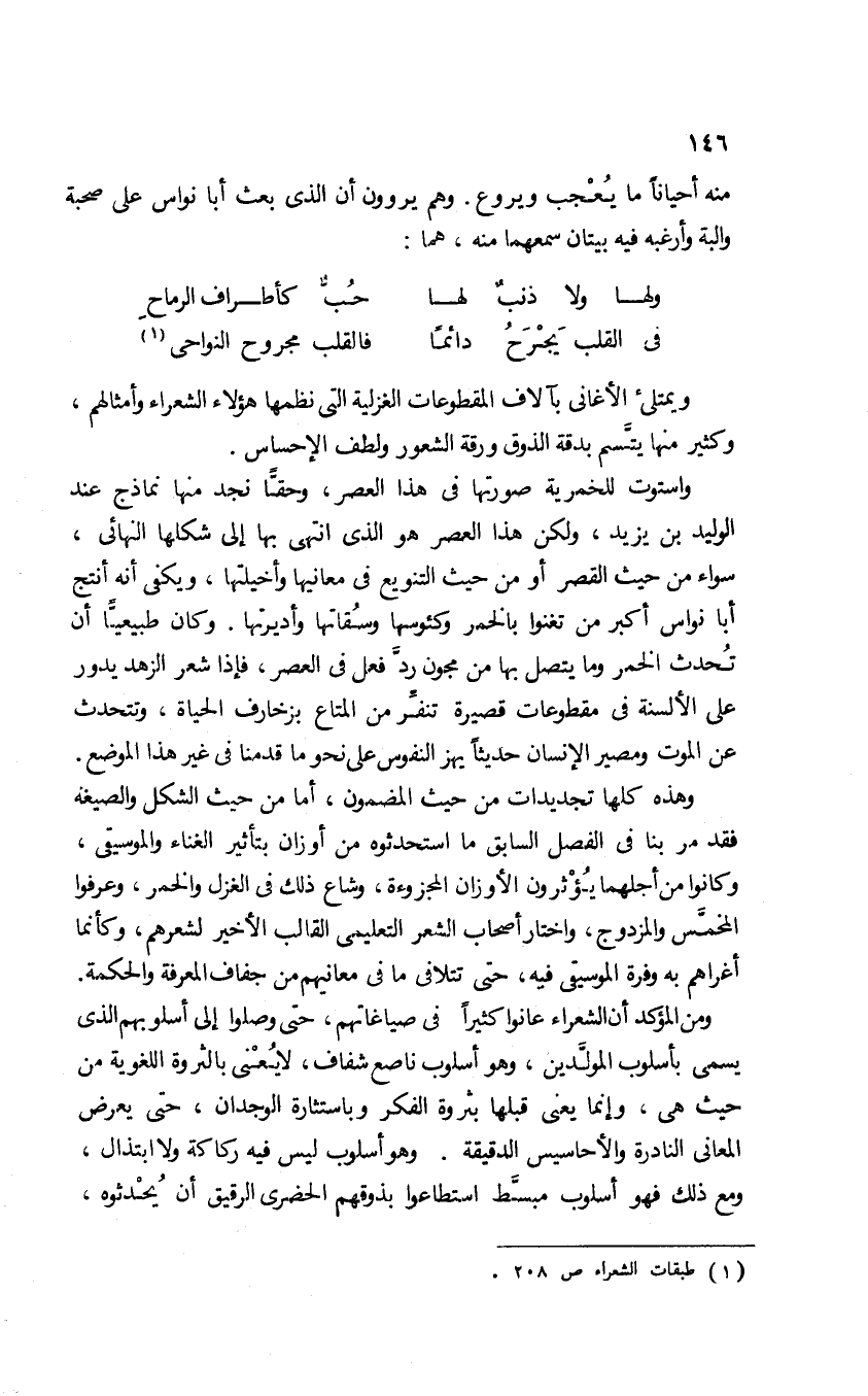منه أحيانًا ما يعجب ويروع وهم يروون أن الذي بعث أبا نواس على صحبة والبة وأرغبه فيه بيتان سمعهما منه، هما: