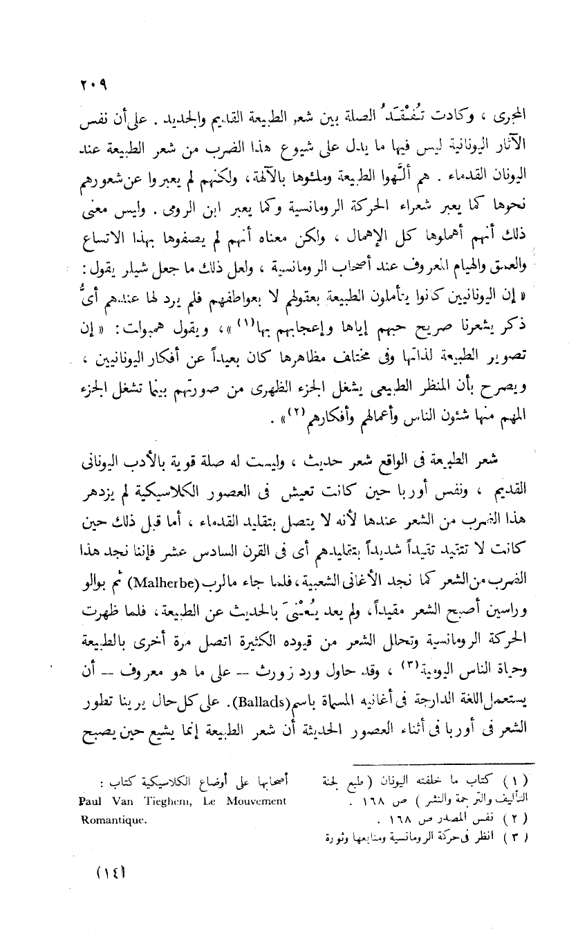 3 انظر في حركة الرومانسية ومنابعها وثورة أصحابها على أوضاع الكلاسيكية كتاب: Paul Van Tieghem, le Mouvement Romantique