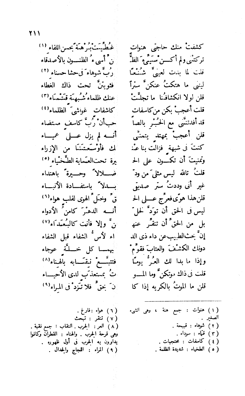 قلت أعجب بكن من كاسفاتٍ ... كاشفاتٍ غواشيَ الظلماء4
