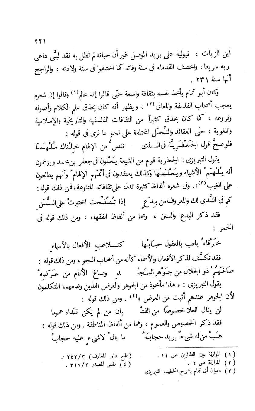 3 ديوان أبي تمام بشرح الخطيب التبريزي "طبع دار المعارف" 3/ 242.