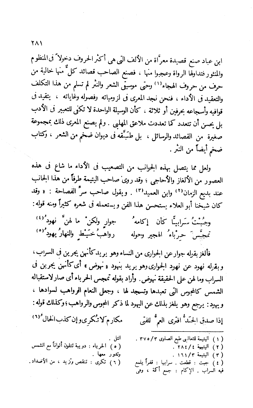 1 اليتيمة: للثعالبي "طبع الصاوي" 3/ 375.