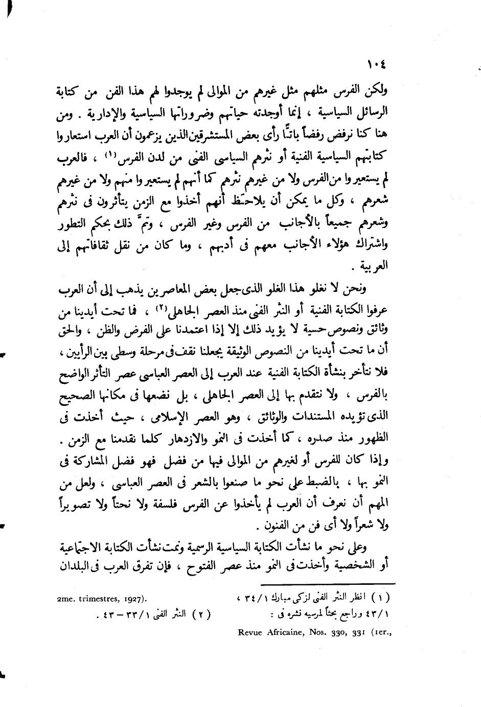 1 انظر النثر الفني لزكي مبارك 1/ 34، 1/ 43، وراجع بحثا لمرسيه نشره في: