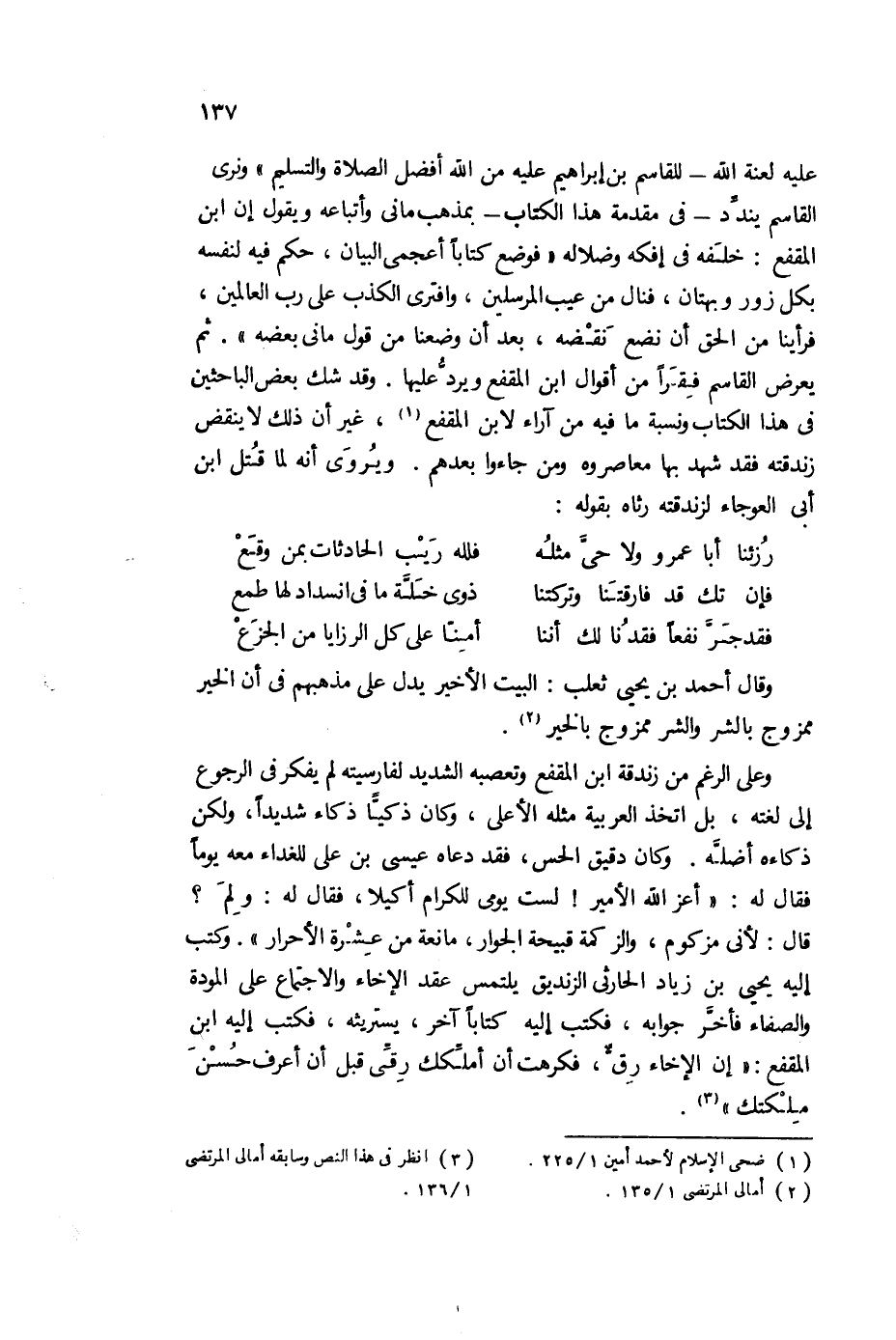 3 انظر في هذا النص، وسابقه أمالي المرتضى 1/ 136.