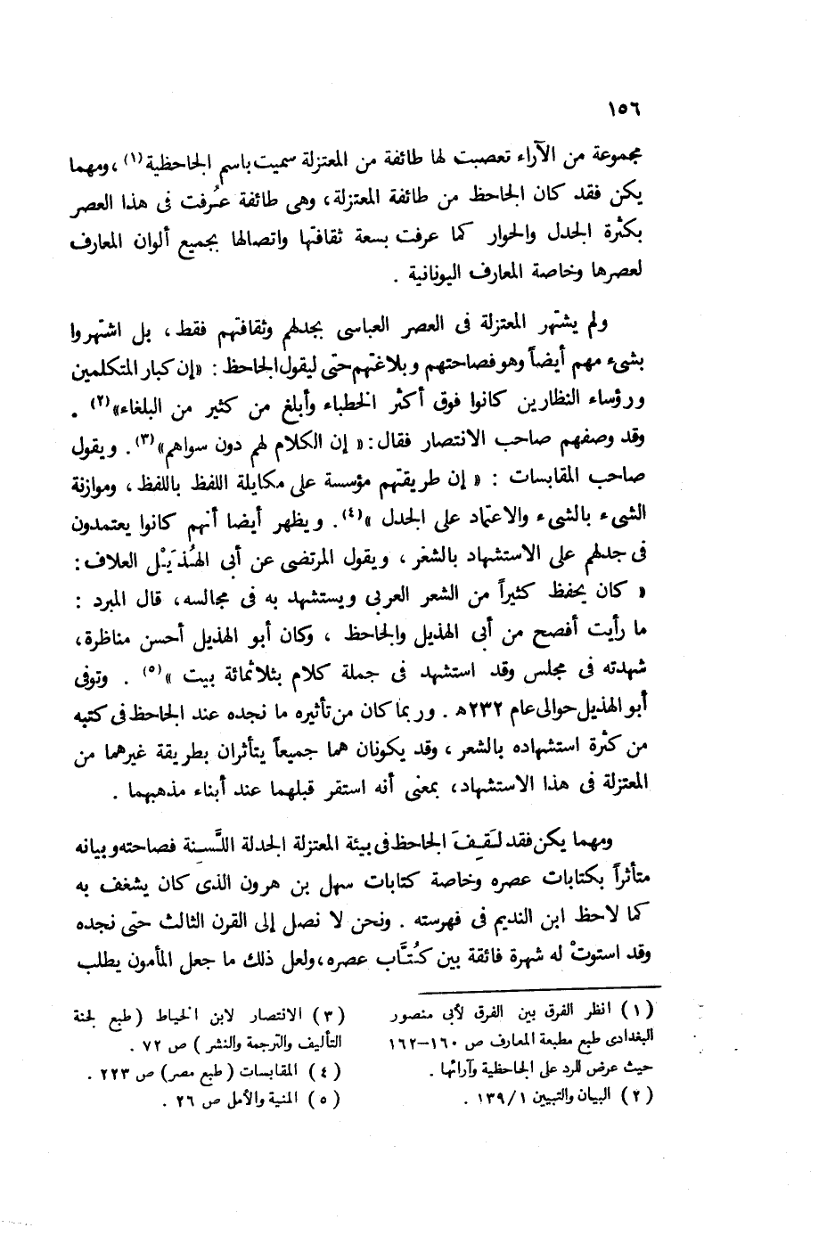 1 انظر الفرق بين الفرق لأبي منصور البغدادي، طبع مطبعة المعارف ص 160 -162 حيث عرض للرد على الجاحظية وآرائها.