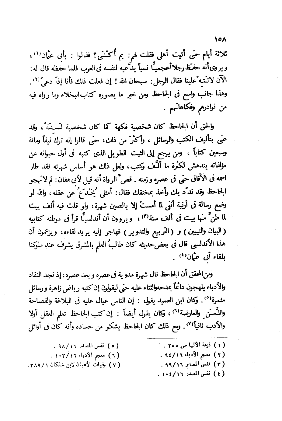ثلاثة أيام حتى أتيت أهلي فقلت لهم: بم أكنى؟ فقالوا: بأبي عثمان1، ويروى أنه حفظ رجلا أعجميا نسبا يدعيه لنفسه في العرب، فلما حفظه قال له: الآن لآتته علينا، فقال الرجل: سبحان الله! إن فعلت ذلك فأنا إذا دعي2، وهذا جانب واسع في الجاحظ، ومن خير ما يصوره كتاب البخلاء، وما رواه فيه من نوادرهم، وفكاهاتهم.