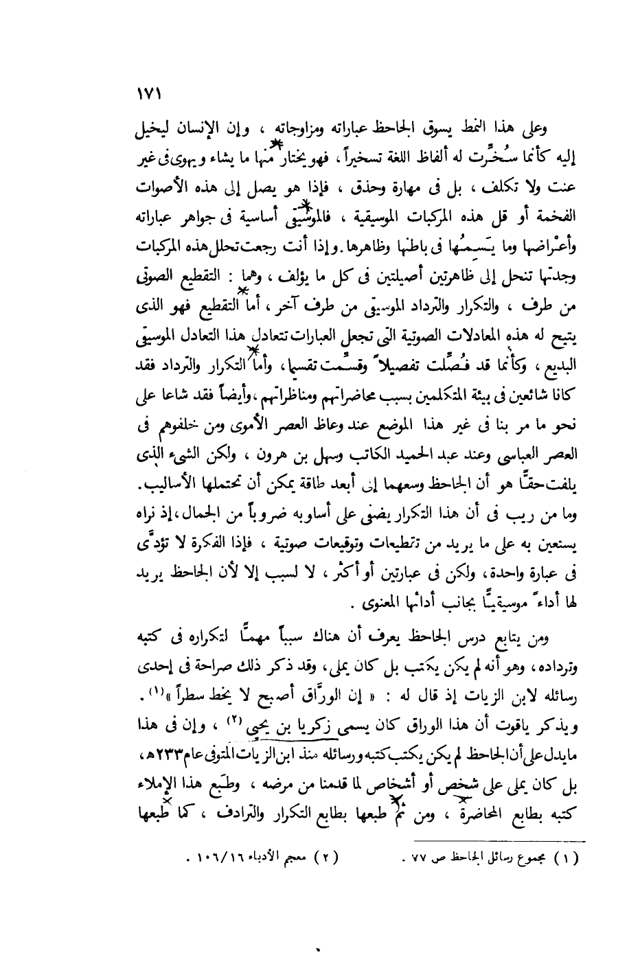 1 مجموعة رسائل الجاحظ ص 77.