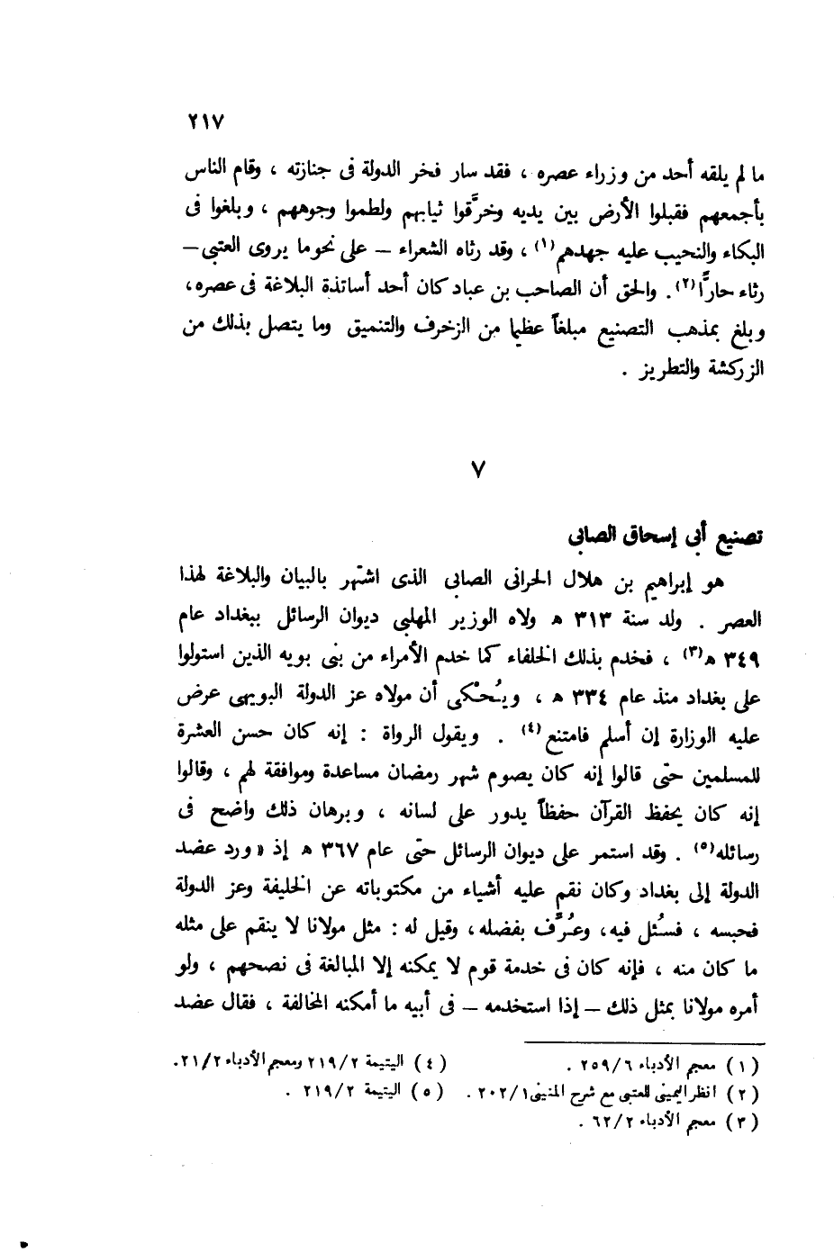 2 اليتيمة 2/ 219، ومعجم الأدباء 2/ 21.