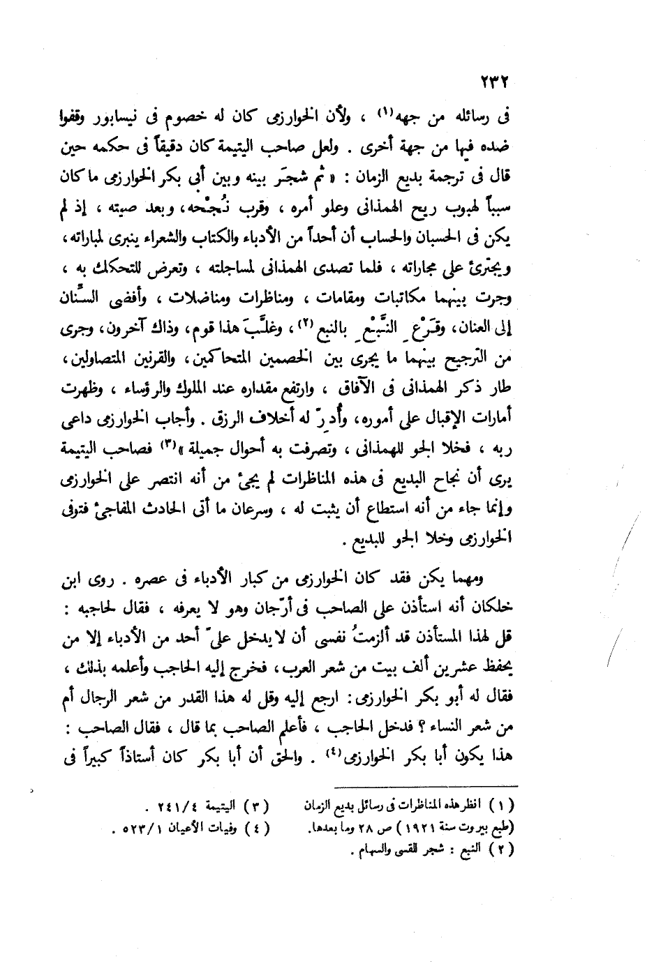 1 انظر هذه المناظرات في رسائل بديع الزمان "طبع بيروت سنة 1921 " ص 28، وما بعدها.