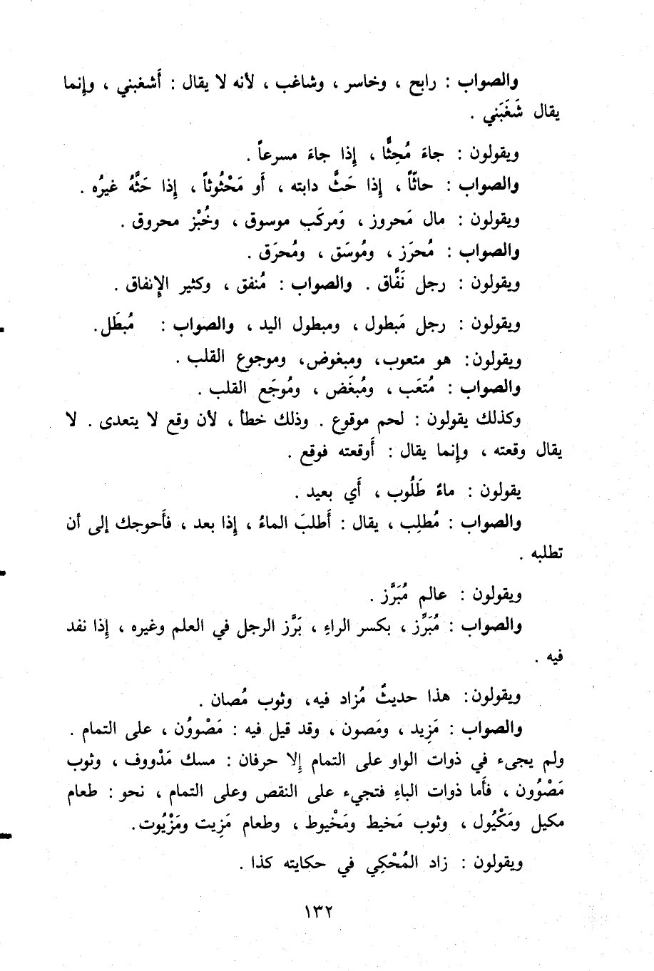 ويقولون: رجل مبطول، ومبطول اليد، والصواب: مبطل.