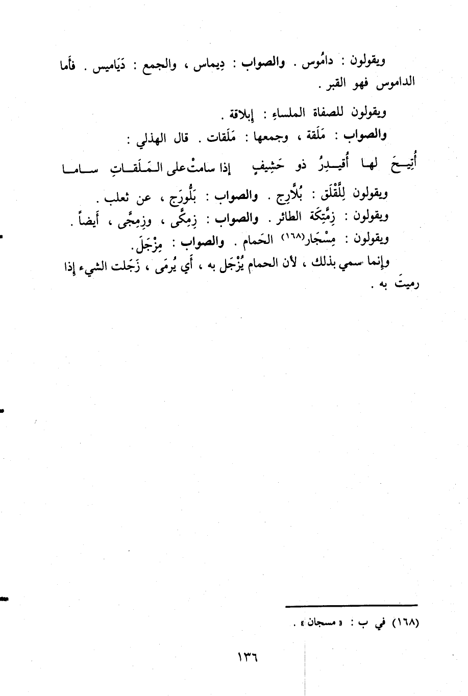 وإنما سمى بذلك، لأن الحمام يزجل به، أي يرمي، زجلت الشيء إذا رميت به.