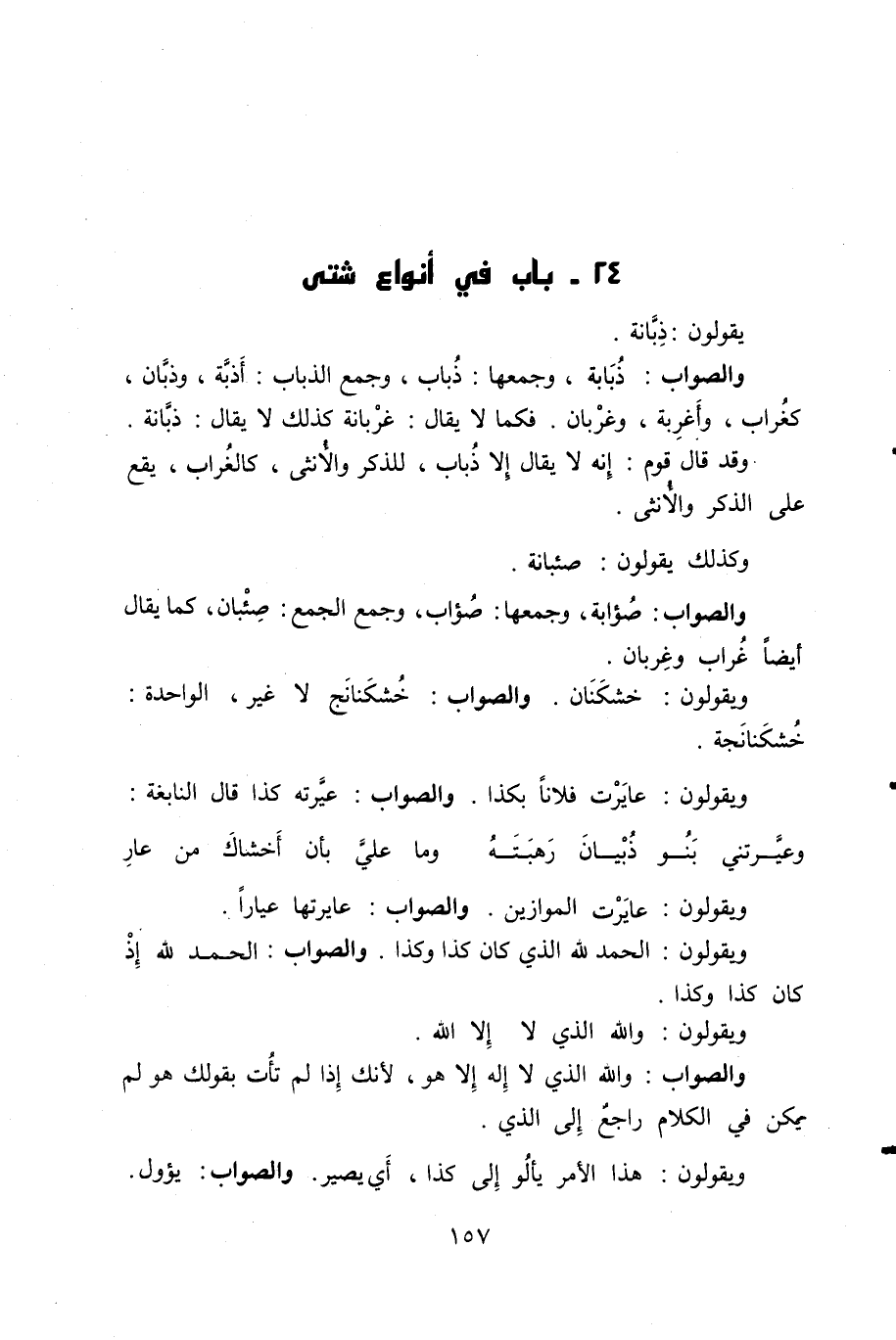 والصواب: صؤابة، وجمعها: صؤاب، وجمع الجمع: صئبان، كما يقال أيضا غراب وغربان.