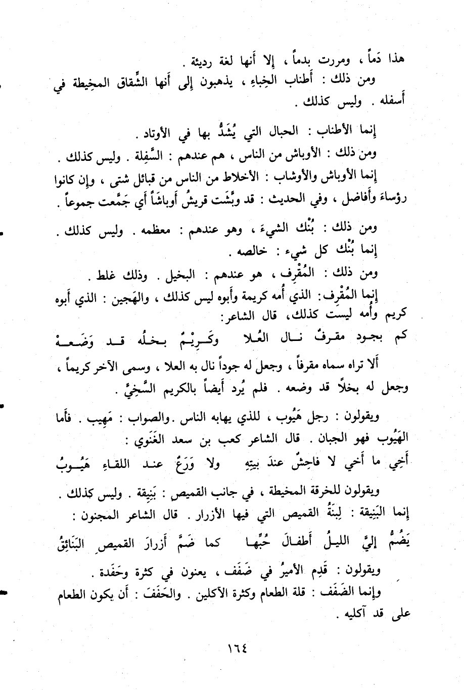 ومن ذلك: أطناب الخباء، يذهبون إلى أنها الشقاق المخيطة في أسفله. وليس كذلك.